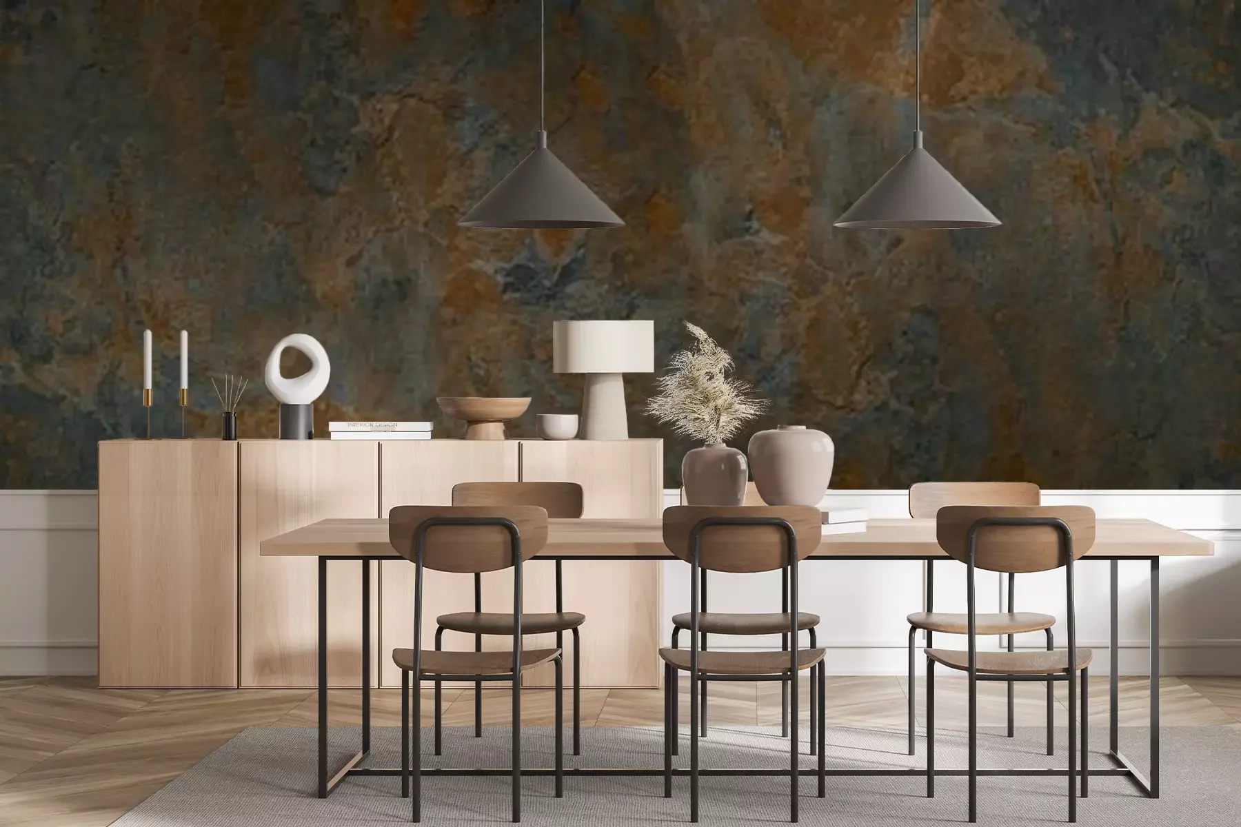 Das Material Premium+ besteht aus einer strukturierten Vinyl-Oberschicht und einem Trägermaterial (Vlies) mit einer Grammatur von 255 g/m², das kleine Unebenheiten der Wand zuverlässig kaschiert. Die feine Sandstruktur verleiht der Oberfläche eine luxuriöse Haptik, während das halbmatte Finish die Tiefe der Farben betont. Das Material ist dampfdurchlässig – so kann diese Fototapete auch in Küchen und Badezimmern eingesetzt werden. Die maximale Breite einer Tapetenbahn beträgt 100 cm. Bei größeren Abmessungen besteht die Fototapete aus mehreren gleich großen Bahnen. Der Kleber wird direkt auf die Wand aufgetragen, und die Fototapete wird auf Stoß angebracht, was für einen ästhetischen Effekt ohne sichtbare Fugen sorgt. Die Oberfläche ist pflegeleicht und kann bei Bedarf sanft mit einem feuchten Tuch abgewischt werden.