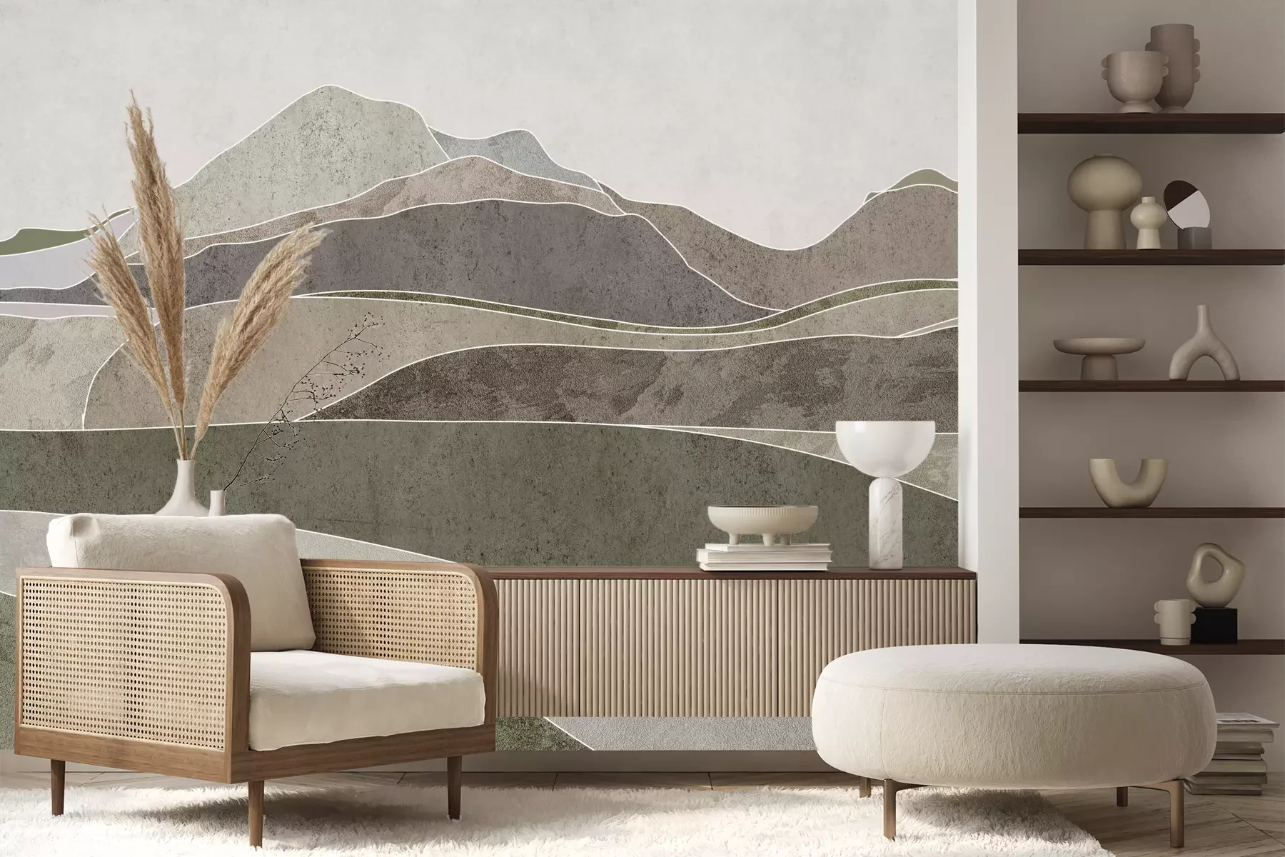 Das Material Premium+ besteht aus einer strukturierten Vinyl-Oberschicht und einem Trägermaterial (Vlies) mit einer Grammatur von 255 g/m², das kleine Unebenheiten der Wand zuverlässig kaschiert. Die feine Sandstruktur verleiht der Oberfläche eine luxuriöse Haptik, während das halbmatte Finish die Tiefe der Farben betont. Das Material ist dampfdurchlässig – so kann diese Fototapete auch in Küchen und Badezimmern eingesetzt werden. Die maximale Breite einer Tapetenbahn beträgt 100 cm. Bei größeren Abmessungen besteht die Fototapete aus mehreren gleich großen Bahnen. Der Kleber wird direkt auf die Wand aufgetragen, und die Fototapete wird auf Stoß angebracht, was für einen ästhetischen Effekt ohne sichtbare Fugen sorgt. Die Oberfläche ist pflegeleicht und kann bei Bedarf sanft mit einem feuchten Tuch abgewischt werden.