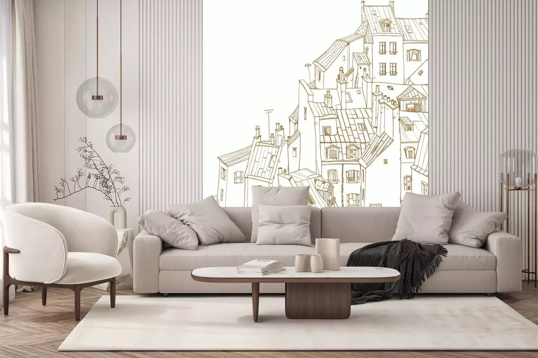 Das Material Standard ist ein hochwertiges Latexmaterial mit einer glatten, matten Oberfläche. Durch den Einsatz von HP-Latex-Drucktechnologie sind die Farben satt, langlebig und UV-beständig. So bleibt das Muster über Jahre hinweg makellos schön. Die verschmutzte Oberfläche dieses Materials kann sanft mit einem trockenen Tuch abgewischt werden. Die maximale Breite einer einzelnen Bahn beträgt 95 cm oder 105 cm – je nach Breite der bestellten Fototapete. Bei Fototapeten mit größeren Abmessungen besteht der Ausdruck aus mehreren gleich großen Tapetenbahnen. Die Fototapete wird auf Stoß angebracht, wodurch die Fugen nahezu unsichtbar sind.