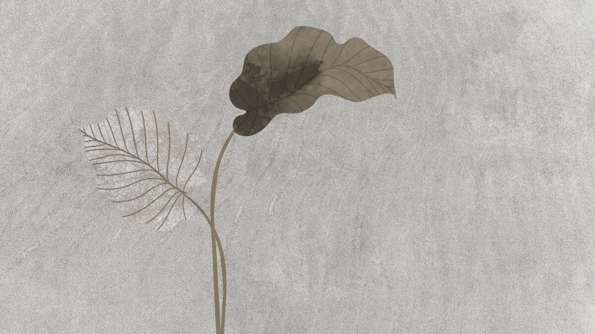 Fototapete: Minimalistisches Blattmuster auf grauem Betonhintergrund