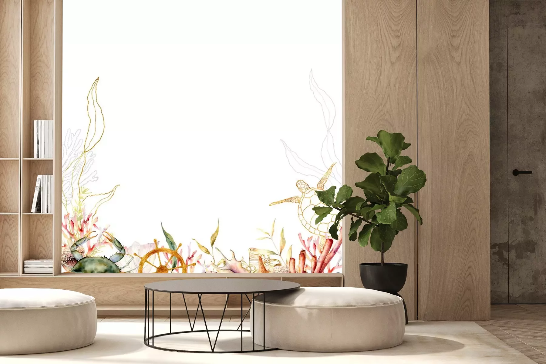 Fototapete Minimalistisches Korallenriff auf weißem Hintergrund