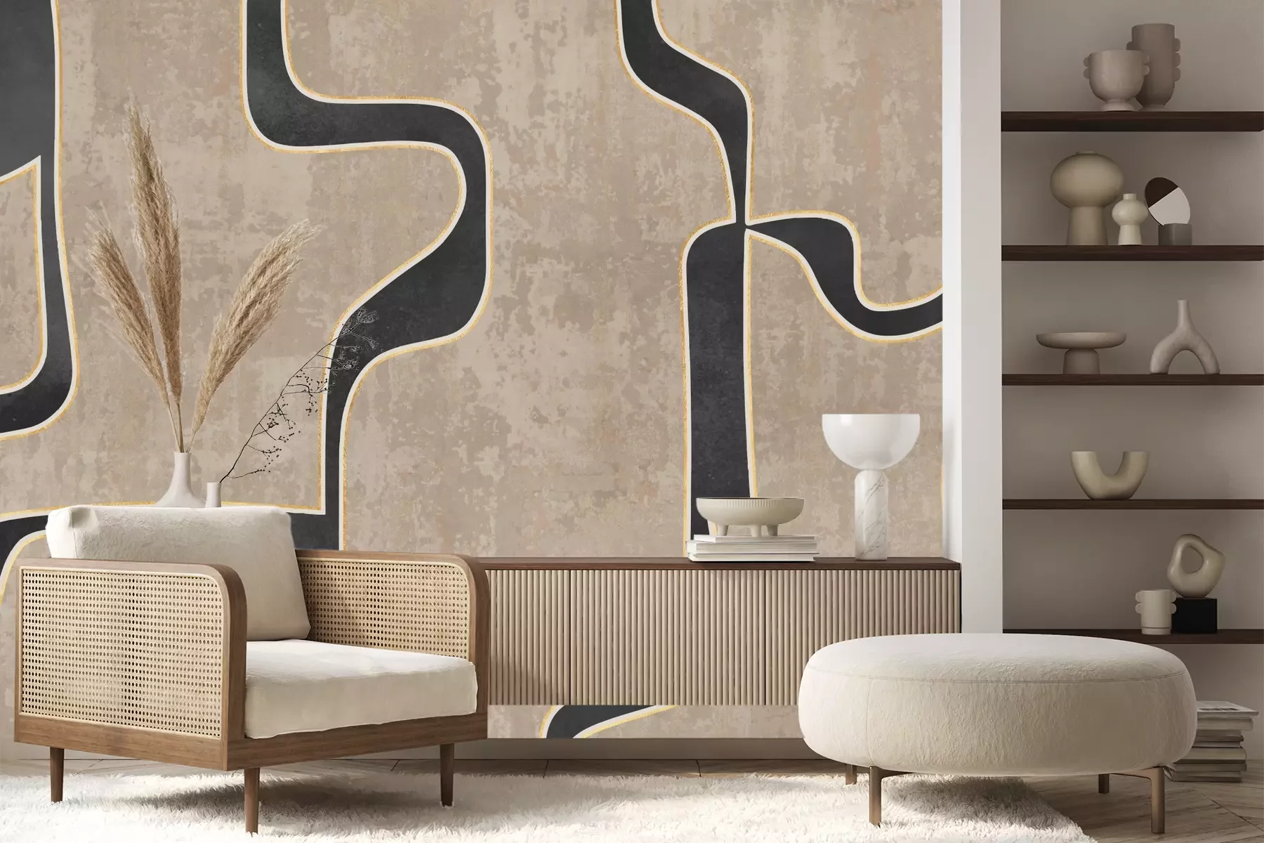 Das Material Premium+ besteht aus einer strukturierten Vinyl-Oberschicht und einem Trägermaterial (Vlies) mit einer Grammatur von 255 g/m², das kleine Unebenheiten der Wand zuverlässig kaschiert. Die feine Sandstruktur verleiht der Oberfläche eine luxuriöse Haptik, während das halbmatte Finish die Tiefe der Farben betont. Das Material ist dampfdurchlässig – so kann diese Fototapete auch in Küchen und Badezimmern eingesetzt werden. Die maximale Breite einer Tapetenbahn beträgt 100 cm. Bei größeren Abmessungen besteht die Fototapete aus mehreren gleich großen Bahnen. Der Kleber wird direkt auf die Wand aufgetragen, und die Fototapete wird auf Stoß angebracht, was für einen ästhetischen Effekt ohne sichtbare Fugen sorgt. Die Oberfläche ist pflegeleicht und kann bei Bedarf sanft mit einem feuchten Tuch abgewischt werden.