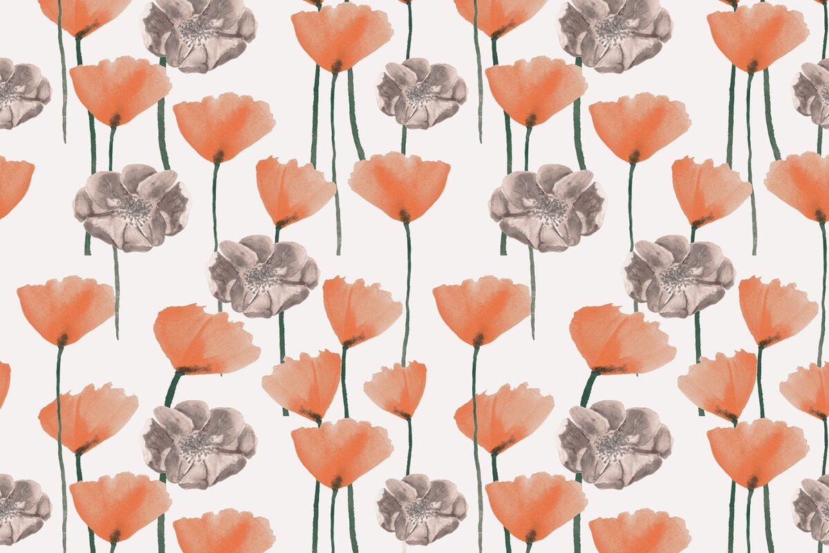 Fototapete: Minimalistisches Muster mit Wildblumen auf weißem Hintergrund