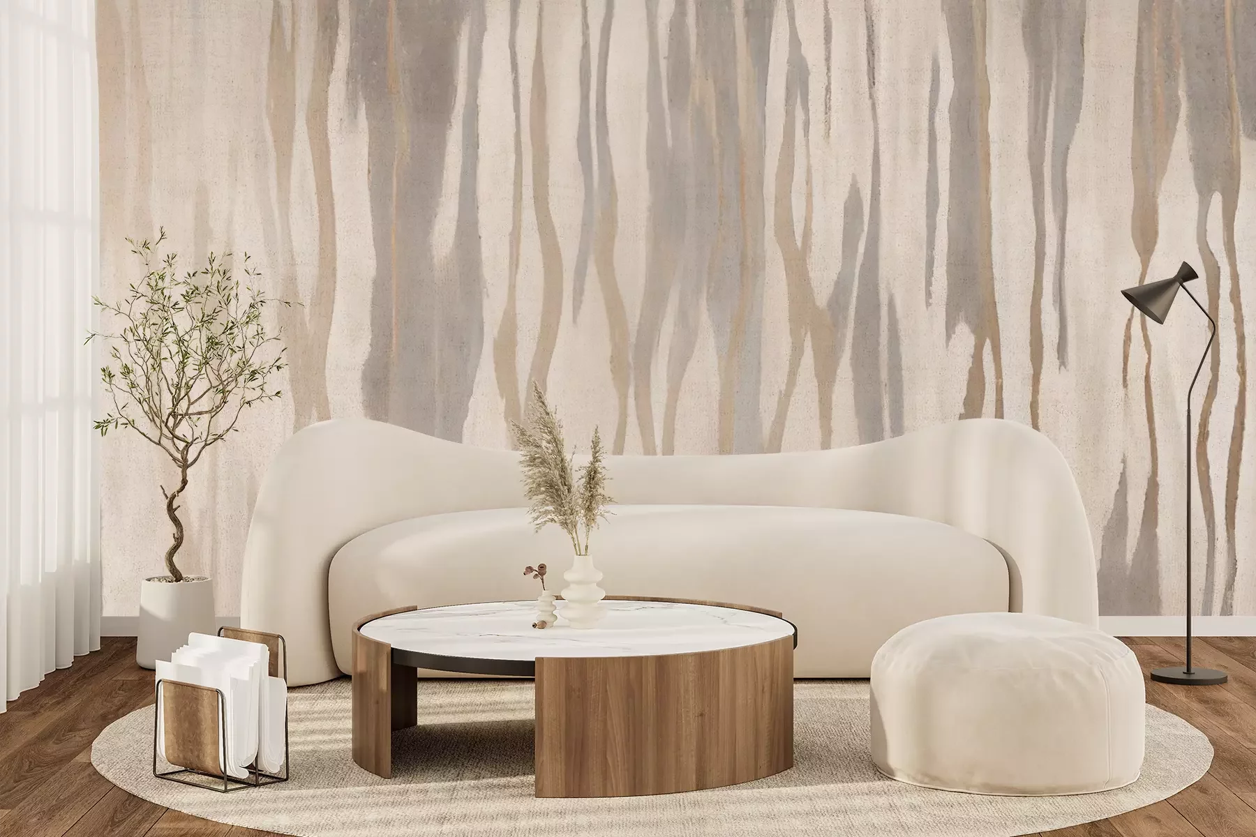 Das Material Premium+ besteht aus einer strukturierten Vinyl-Oberschicht und einem Trägermaterial (Vlies) mit einer Grammatur von 255 g/m², das kleine Unebenheiten der Wand zuverlässig kaschiert. Die feine Sandstruktur verleiht der Oberfläche eine luxuriöse Haptik, während das halbmatte Finish die Tiefe der Farben betont. Das Material ist dampfdurchlässig – so kann diese Fototapete auch in Küchen und Badezimmern eingesetzt werden. Die maximale Breite einer Tapetenbahn beträgt 100 cm. Bei größeren Abmessungen besteht die Fototapete aus mehreren gleich großen Bahnen. Der Kleber wird direkt auf die Wand aufgetragen, und die Fototapete wird auf Stoß angebracht, was für einen ästhetischen Effekt ohne sichtbare Fugen sorgt. Die Oberfläche ist pflegeleicht und kann bei Bedarf sanft mit einem feuchten Tuch abgewischt werden.