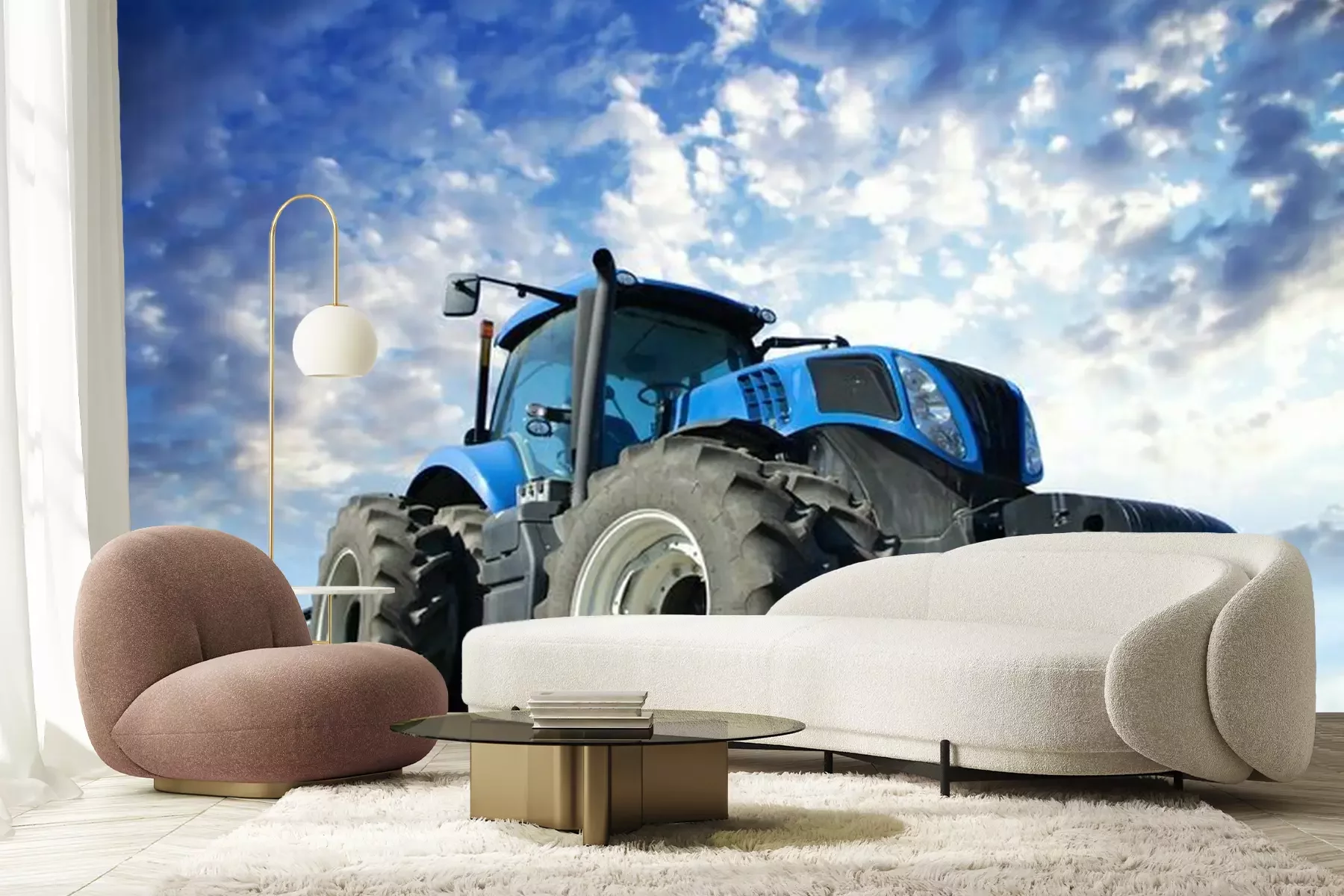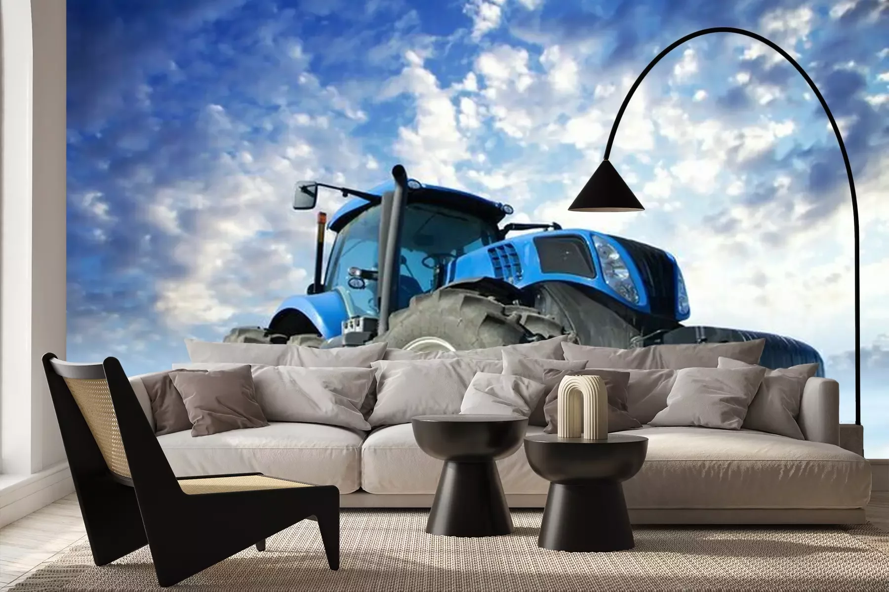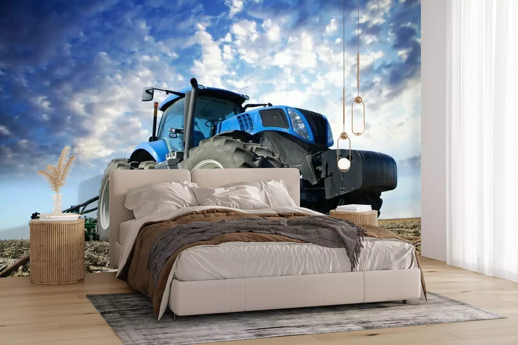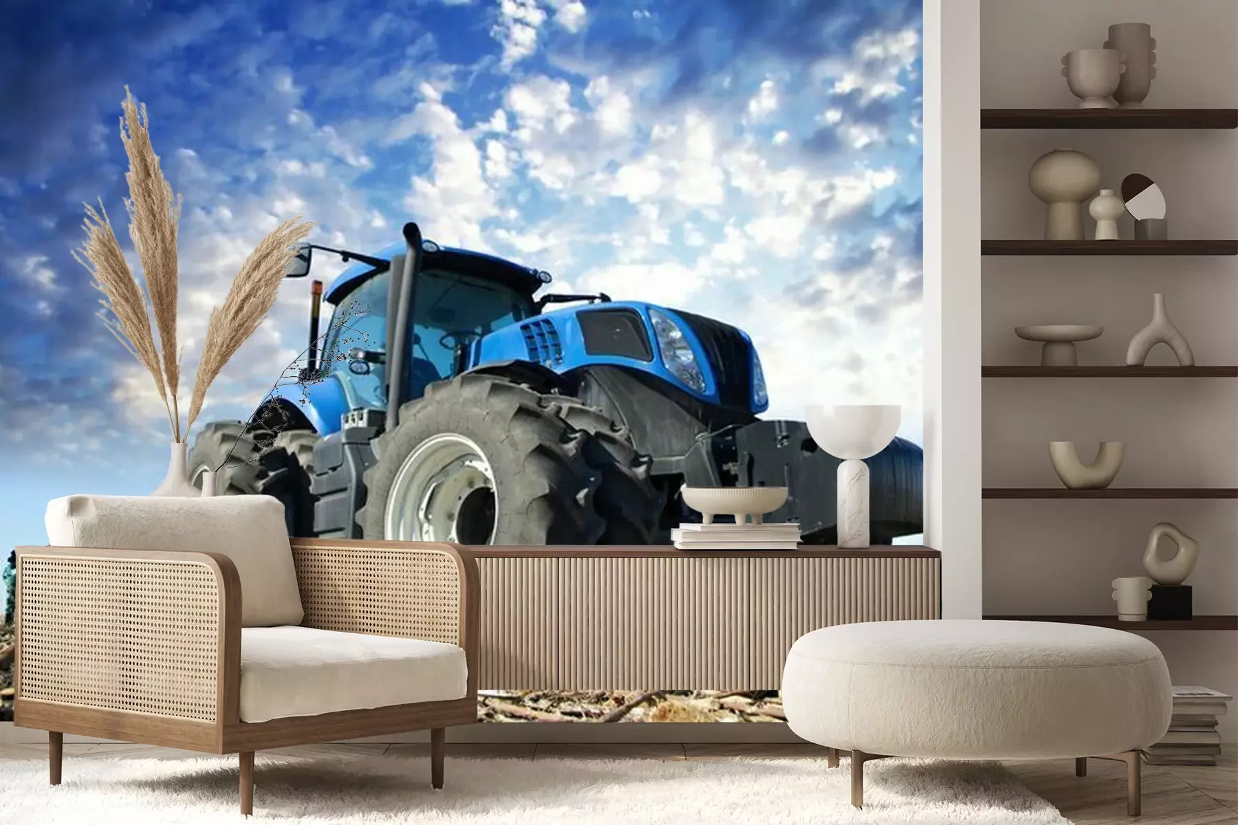 Blauer Traktor mit PflugProblemlose Lieferung durch vertrauenswürdige Spediteure