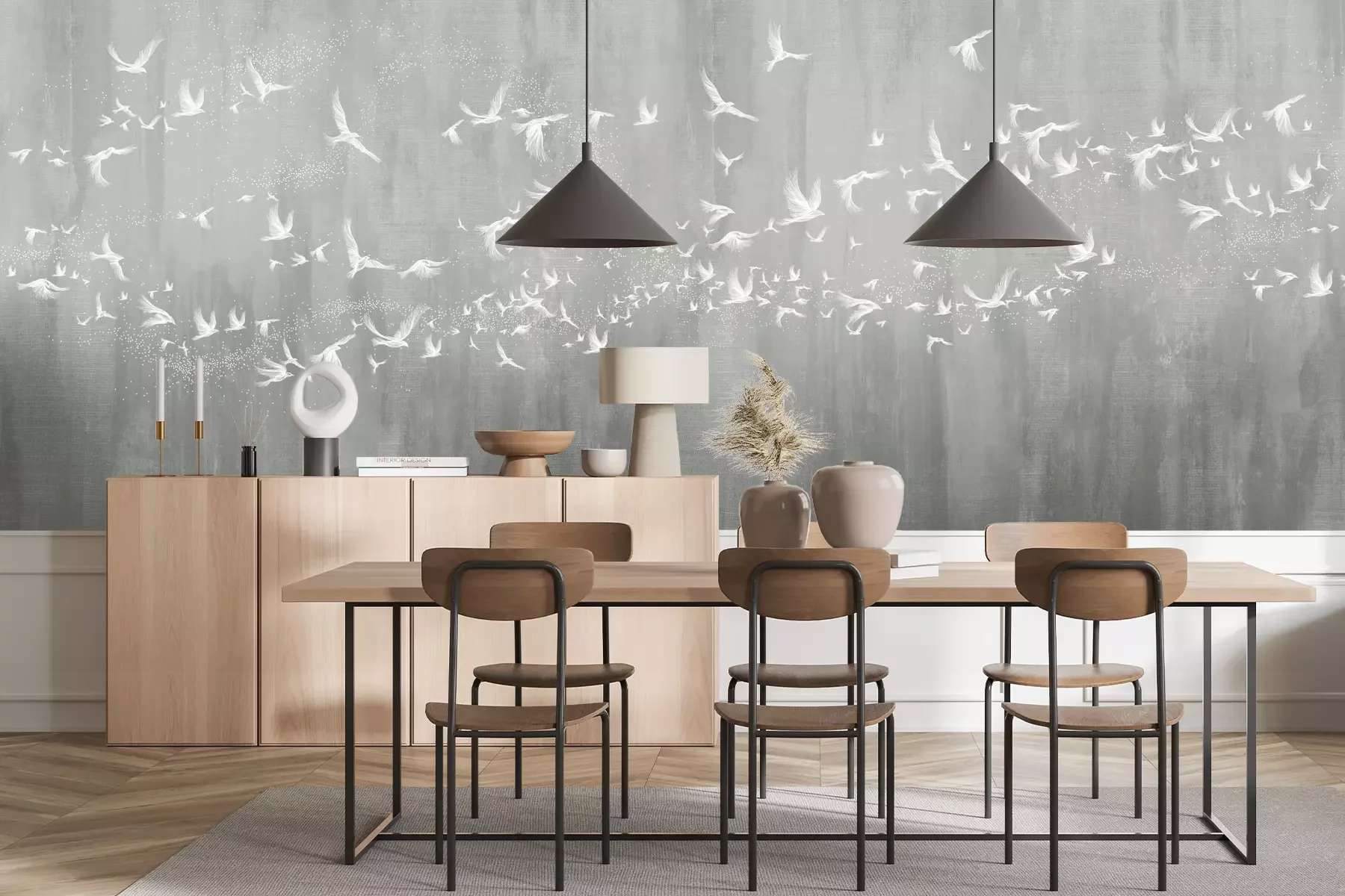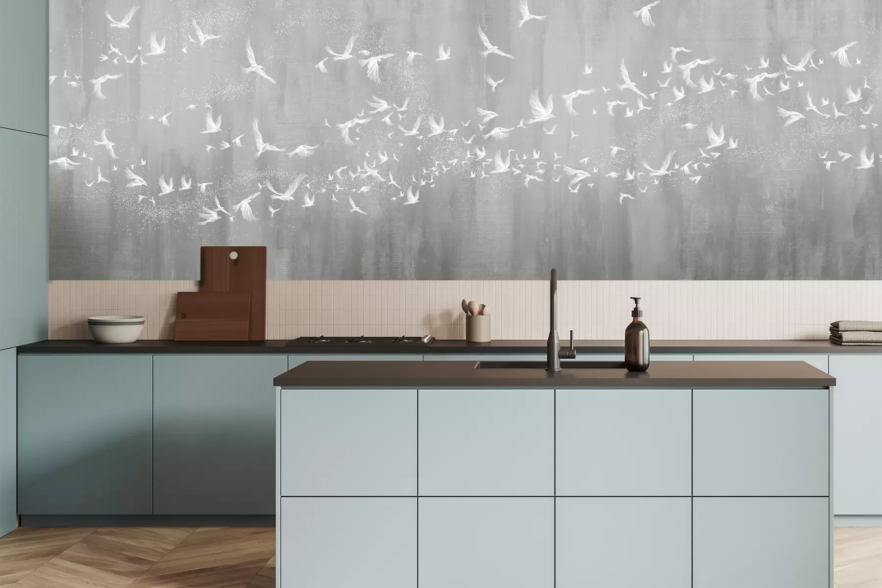 Das Material Premium+ besteht aus einer strukturierten Vinyl-Oberschicht und einem Trägermaterial (Vlies) mit einer Grammatur von 255 g/m², das kleine Unebenheiten der Wand zuverlässig kaschiert. Die feine Sandstruktur verleiht der Oberfläche eine luxuriöse Haptik, während das halbmatte Finish die Tiefe der Farben betont. Das Material ist dampfdurchlässig – so kann diese Fototapete auch in Küchen und Badezimmern eingesetzt werden. Die maximale Breite einer Tapetenbahn beträgt 100 cm. Bei größeren Abmessungen besteht die Fototapete aus mehreren gleich großen Bahnen. Der Kleber wird direkt auf die Wand aufgetragen, und die Fototapete wird auf Stoß angebracht, was für einen ästhetischen Effekt ohne sichtbare Fugen sorgt. Die Oberfläche ist pflegeleicht und kann bei Bedarf sanft mit einem feuchten Tuch abgewischt werden.