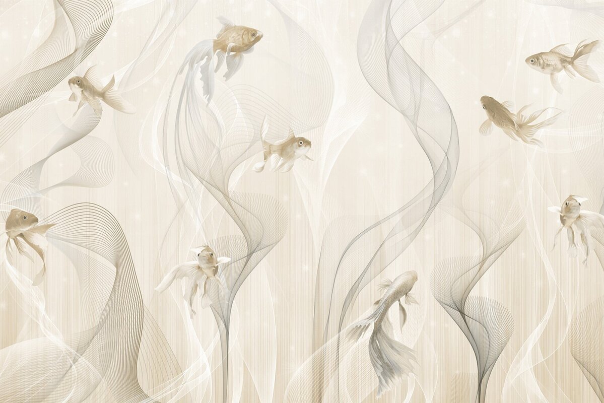 Fototapete: Modernes Muster Fische und Linien auf beigem Hintergrund im minimalistischen Stil