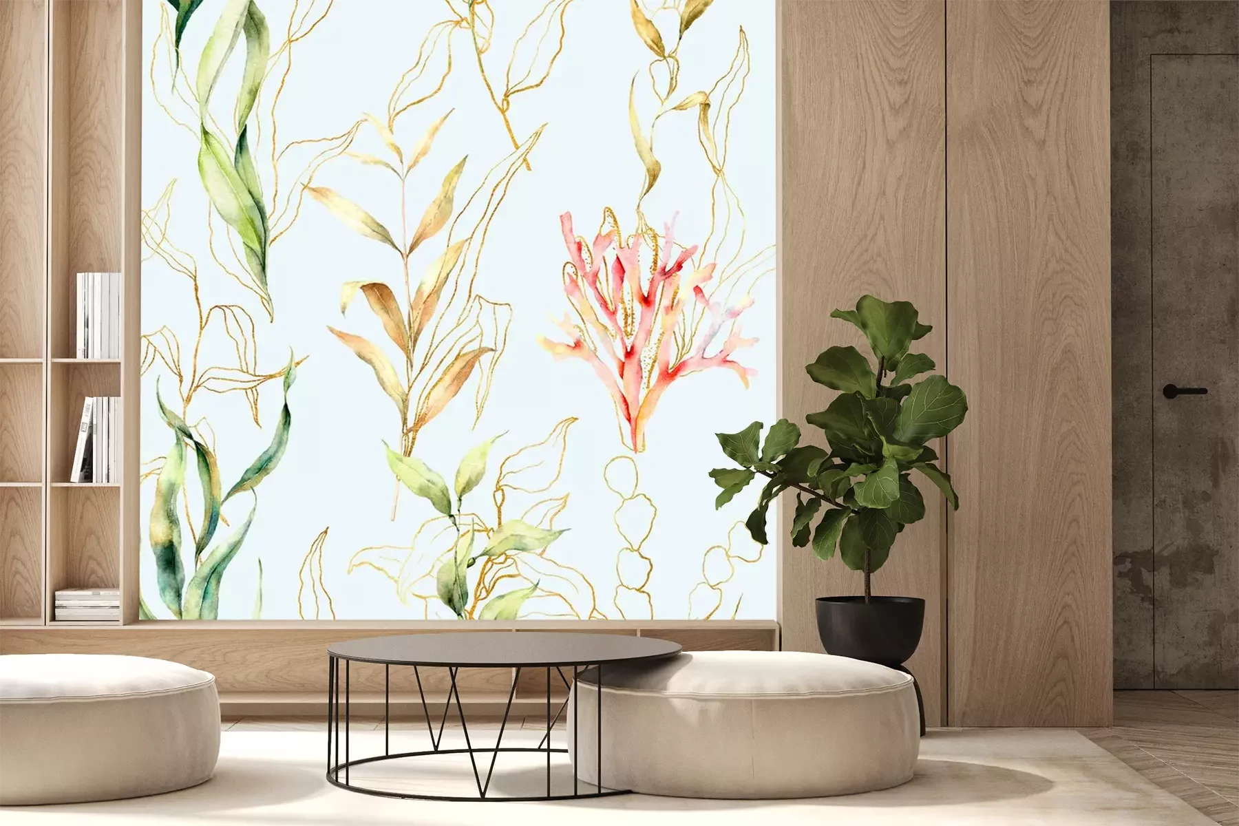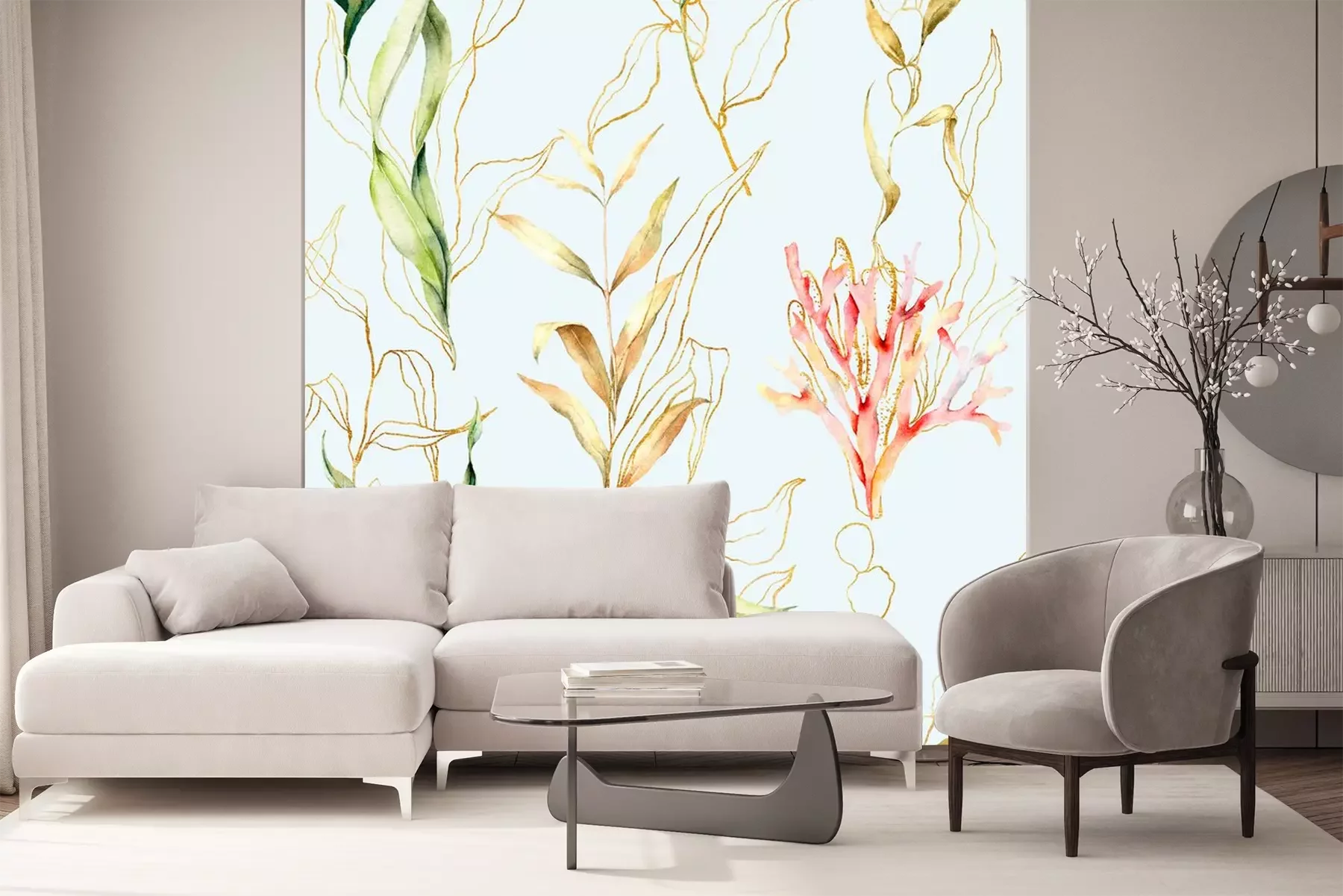 Fototapete Modisches Korallenriff auf blauem Hintergrund