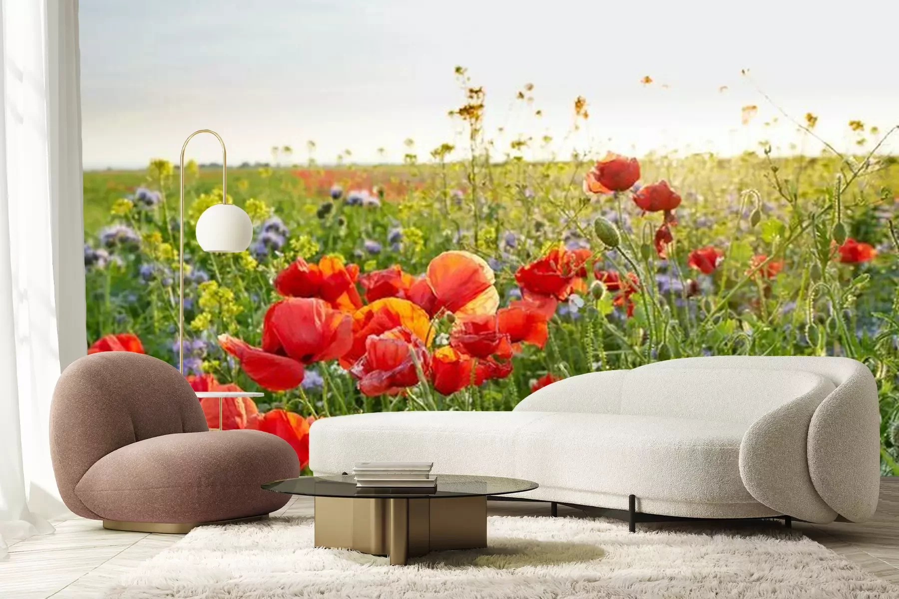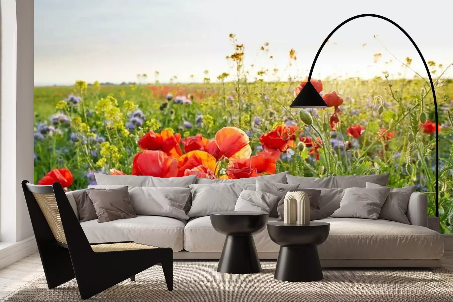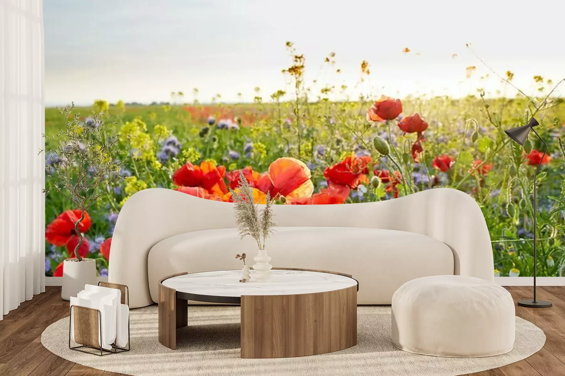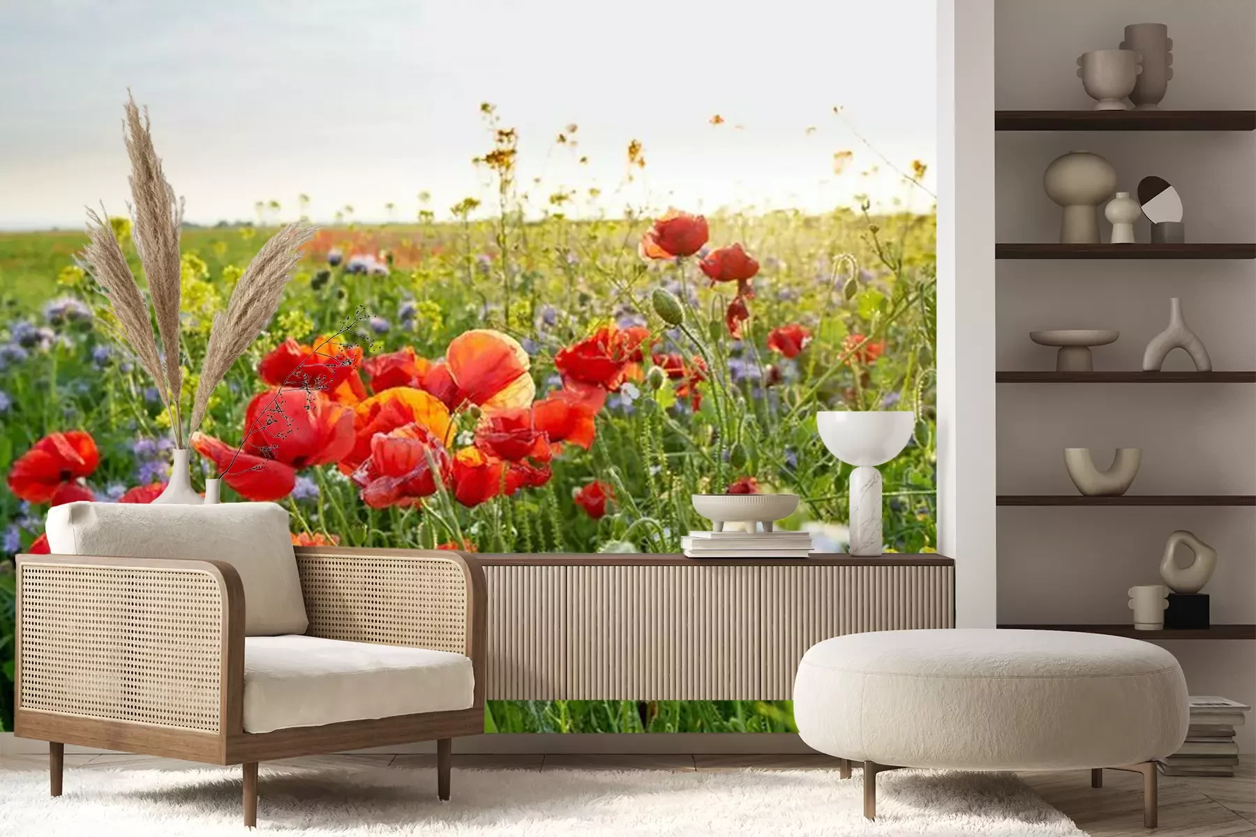 Mohnblumenfeld bei SonnenuntergangFototapete