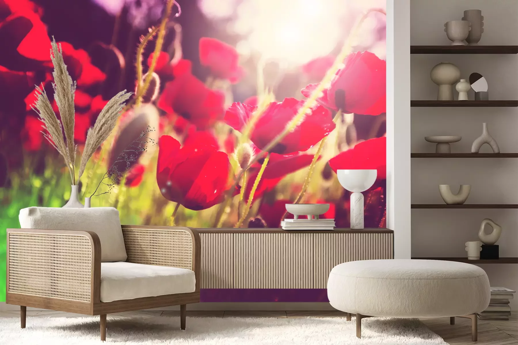 Fototapete Mohne auf der Wiese