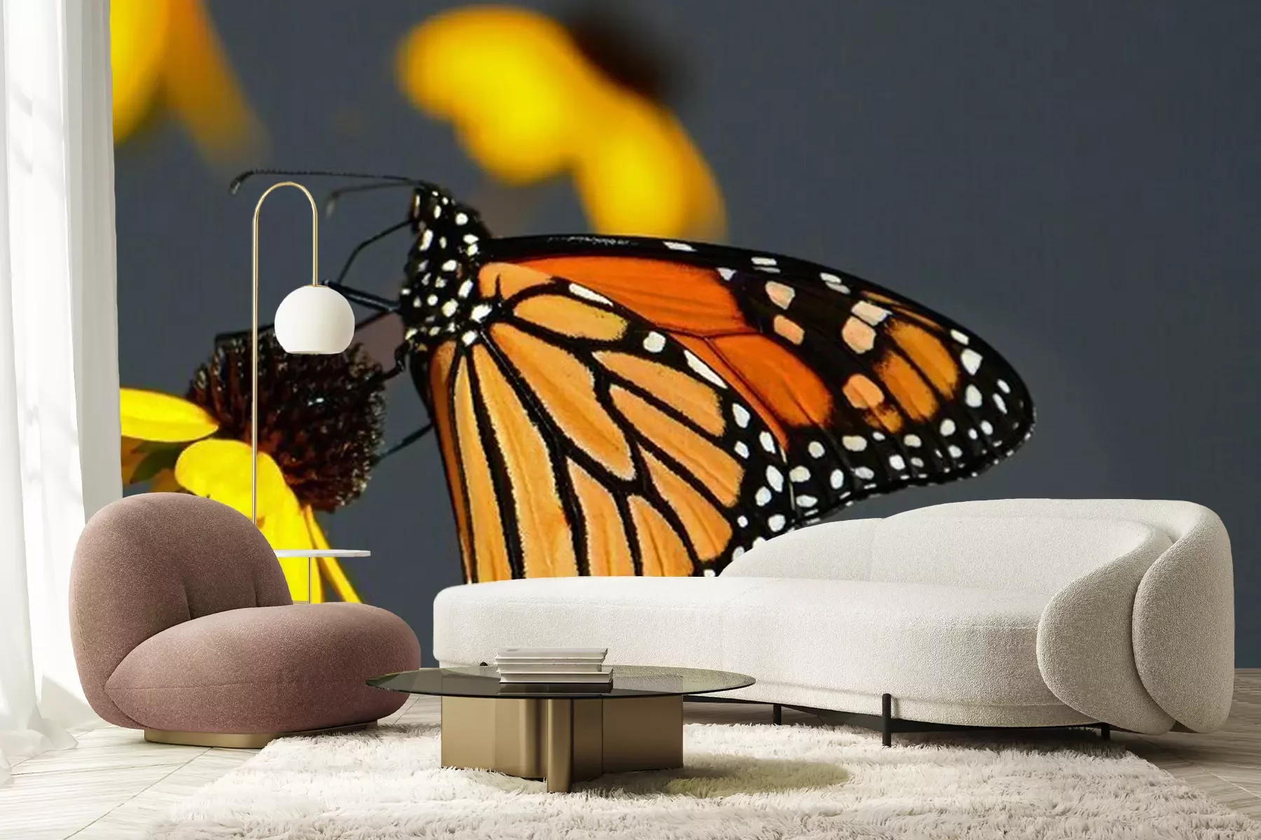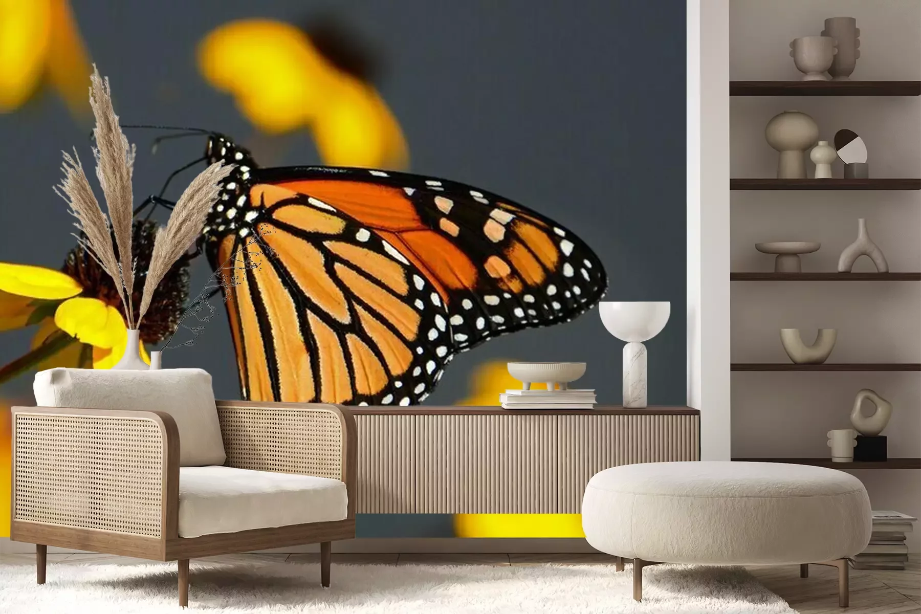 Fototapete Monarchfalter auf einer gelben Blume