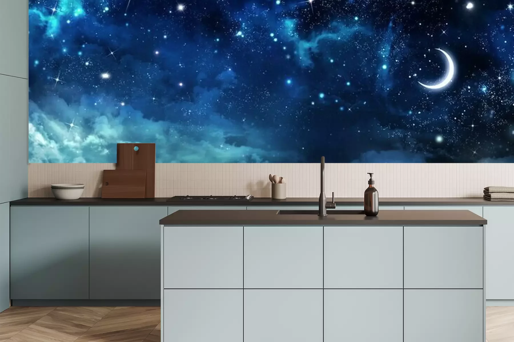 Ein Nachthimmel mit Halbmond und SternenFototapete