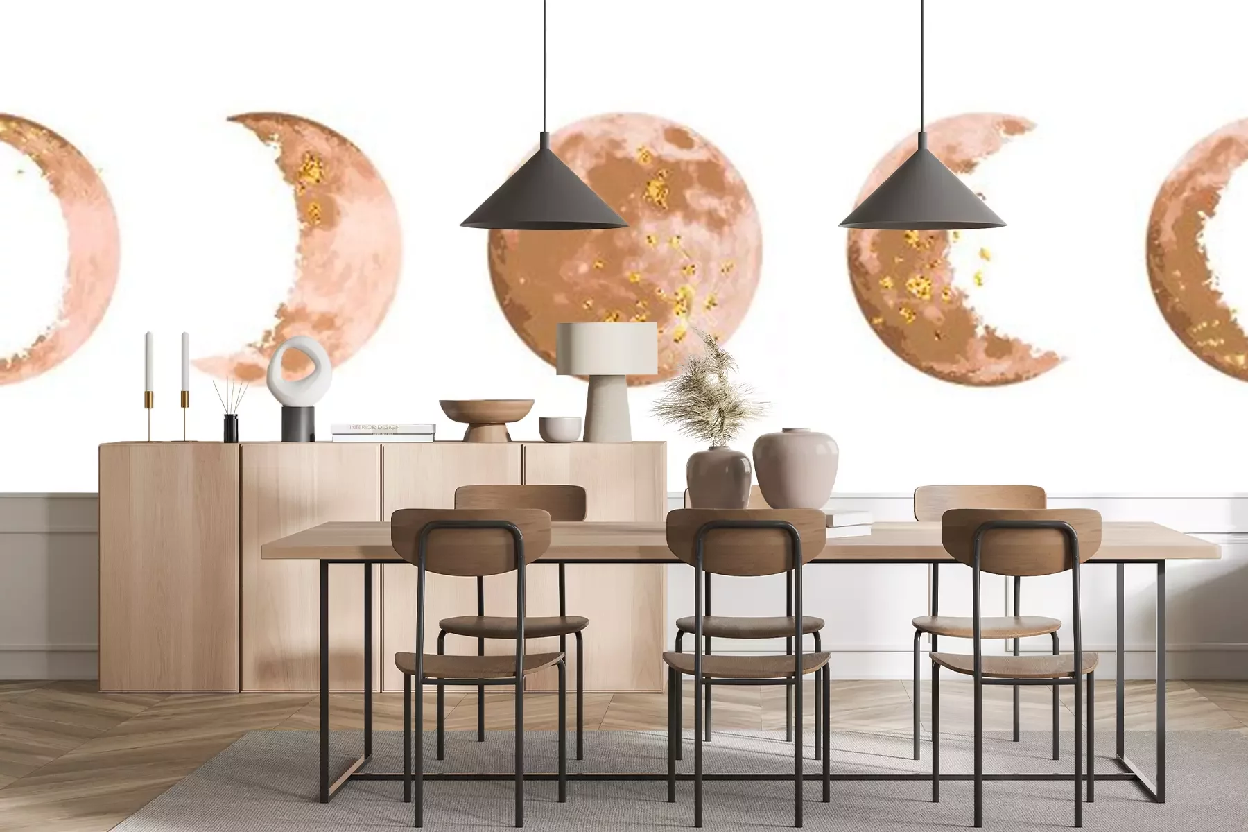 Fototapete Mondphasen im Boho-Stil auf weißem Hintergrund