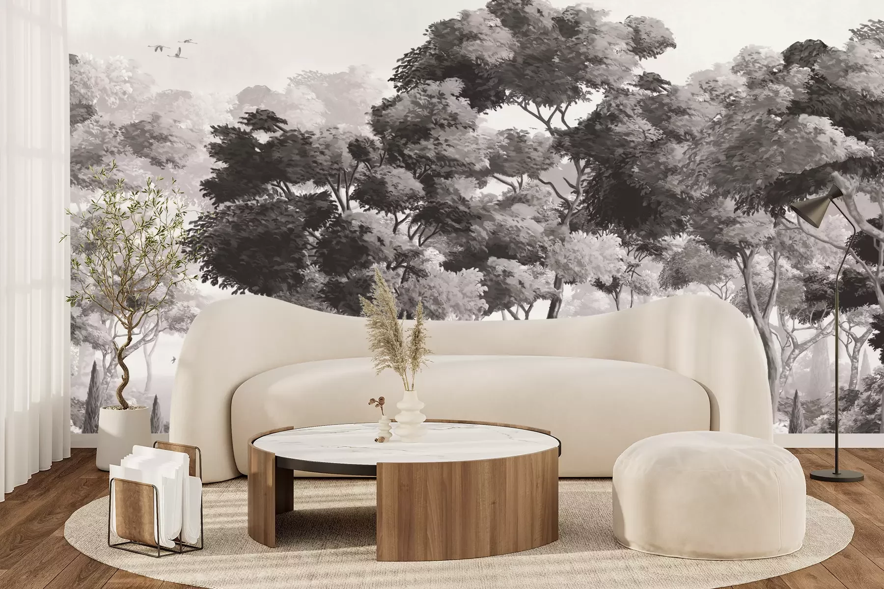 Das Material Premium+ besteht aus einer strukturierten Vinyl-Oberschicht und einem Trägermaterial (Vlies) mit einer Grammatur von 255 g/m², das kleine Unebenheiten der Wand zuverlässig kaschiert. Die feine Sandstruktur verleiht der Oberfläche eine luxuriöse Haptik, während das halbmatte Finish die Tiefe der Farben betont. Das Material ist dampfdurchlässig – so kann diese Fototapete auch in Küchen und Badezimmern eingesetzt werden. Die maximale Breite einer Tapetenbahn beträgt 100 cm. Bei größeren Abmessungen besteht die Fototapete aus mehreren gleich großen Bahnen. Der Kleber wird direkt auf die Wand aufgetragen, und die Fototapete wird auf Stoß angebracht, was für einen ästhetischen Effekt ohne sichtbare Fugen sorgt. Die Oberfläche ist pflegeleicht und kann bei Bedarf sanft mit einem feuchten Tuch abgewischt werden.