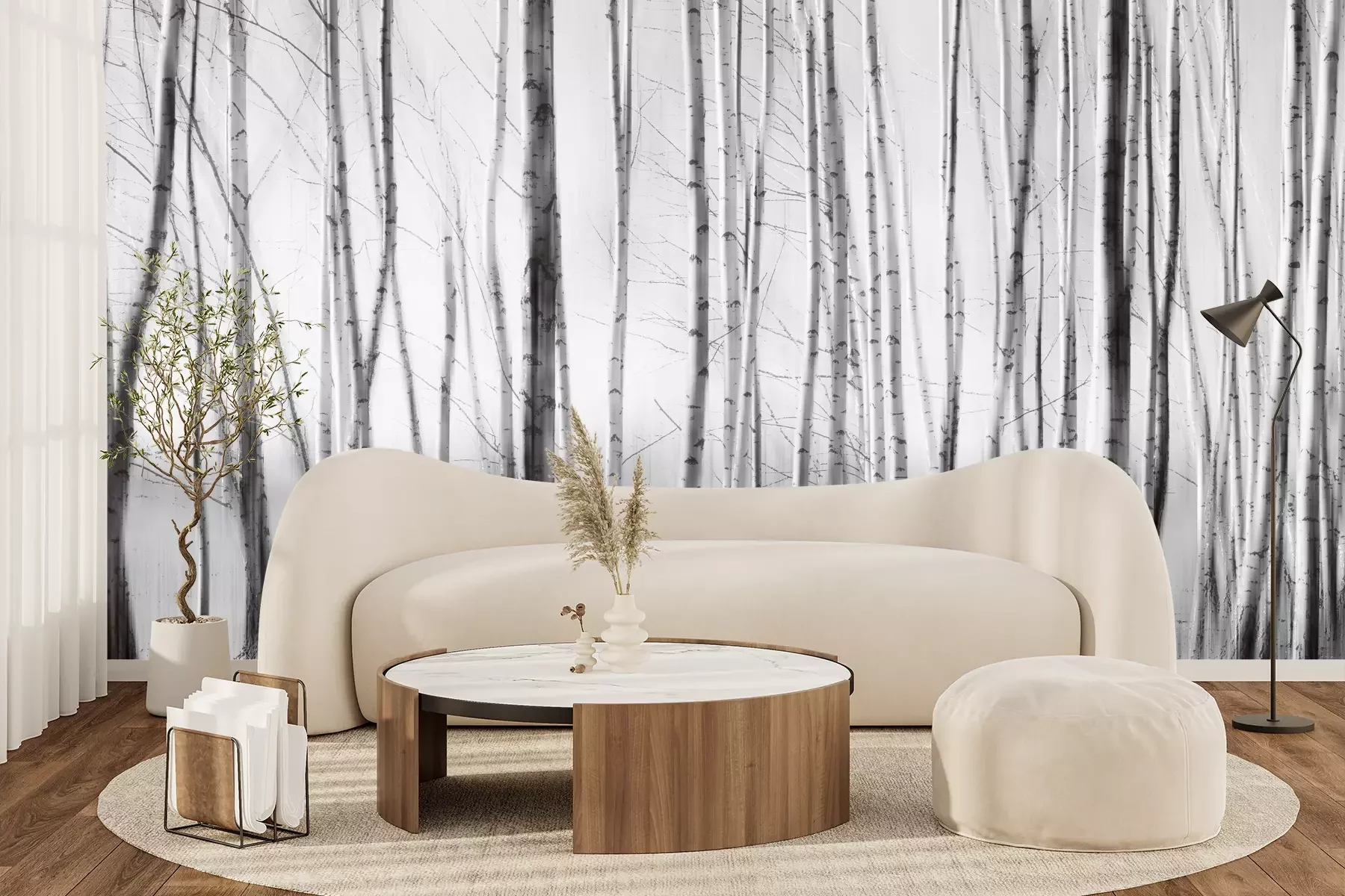 Die Fototapeten werden in Bahnen geliefert. Die Größe und die Anzahl der Bahnen, aus denen die gesamte Fototapete besteht, hängen vom gewählten Material ab. Wenn die Größe die maximale Breite des Materials überschreitet, besteht der Ausdruck aus mehreren gleich großen Bahnen.