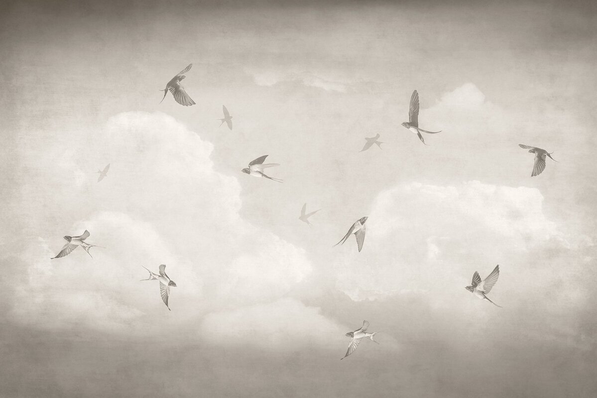 Fototapete: Monochromatischer Himmel mit fliegenden Schwalben