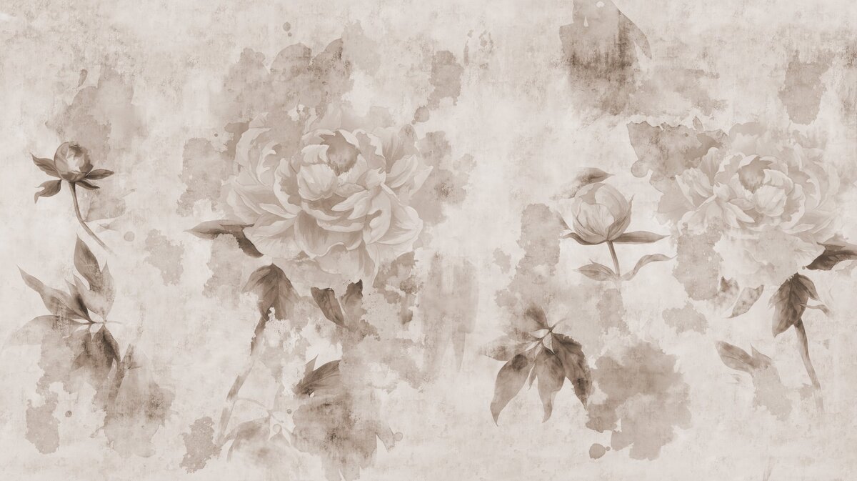Fototapete: Monochrome Blumen auf Beton im Grunge-Stil