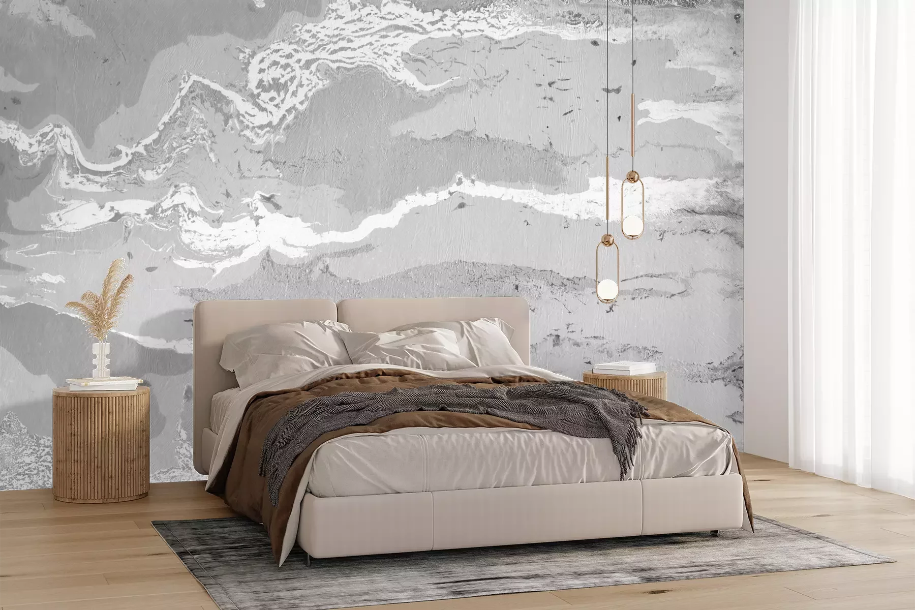Das Material Premium+ besteht aus einer strukturierten Vinyl-Oberschicht und einem Trägermaterial (Vlies) mit einer Grammatur von 255 g/m², das kleine Unebenheiten der Wand zuverlässig kaschiert. Die feine Sandstruktur verleiht der Oberfläche eine luxuriöse Haptik, während das halbmatte Finish die Tiefe der Farben betont. Das Material ist dampfdurchlässig – so kann diese Fototapete auch in Küchen und Badezimmern eingesetzt werden. Die maximale Breite einer Tapetenbahn beträgt 100 cm. Bei größeren Abmessungen besteht die Fototapete aus mehreren gleich großen Bahnen. Der Kleber wird direkt auf die Wand aufgetragen, und die Fototapete wird auf Stoß angebracht, was für einen ästhetischen Effekt ohne sichtbare Fugen sorgt. Die Oberfläche ist pflegeleicht und kann bei Bedarf sanft mit einem feuchten Tuch abgewischt werden.