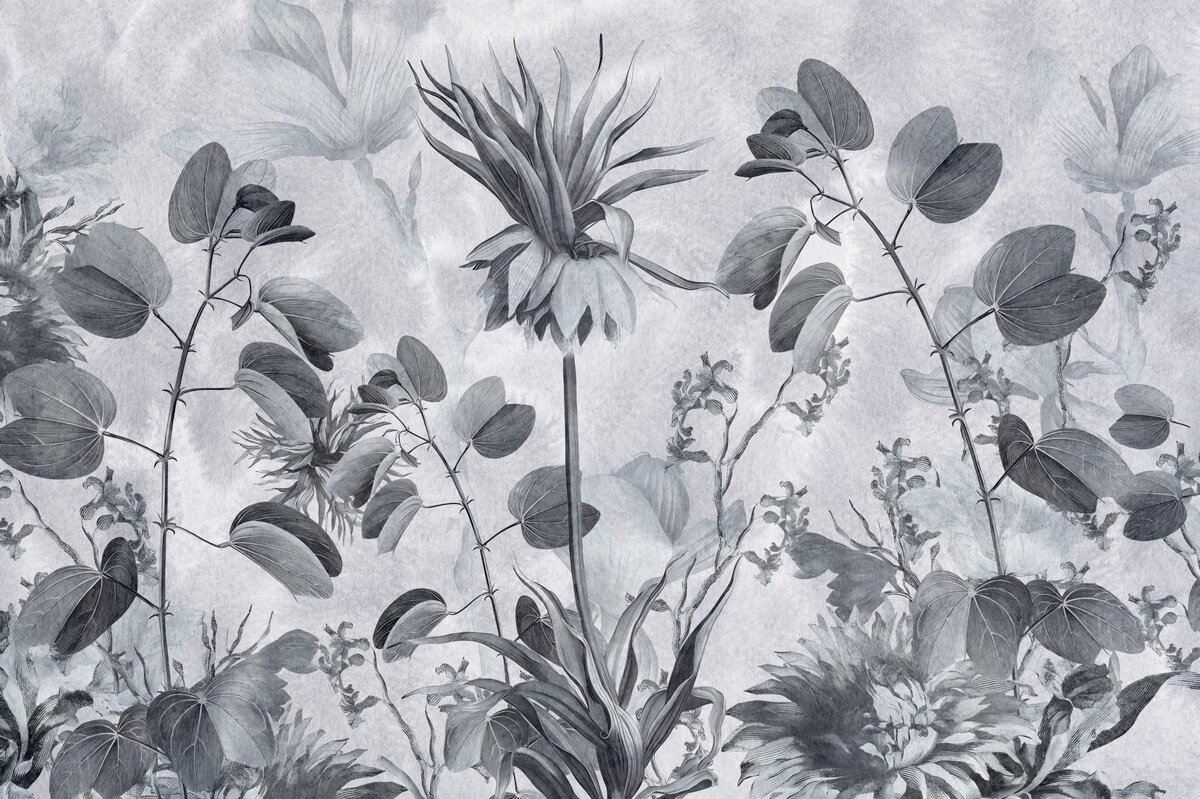 Fototapete: Monochromes botanisches Muster mit tropischer Vegetation