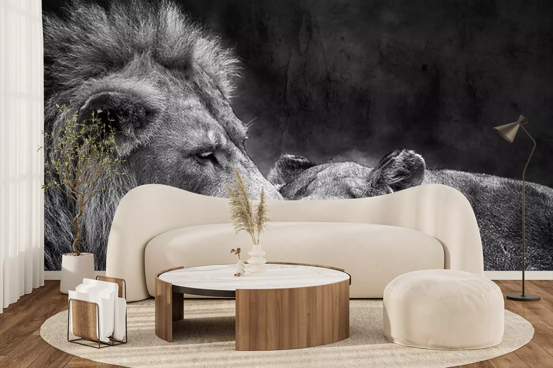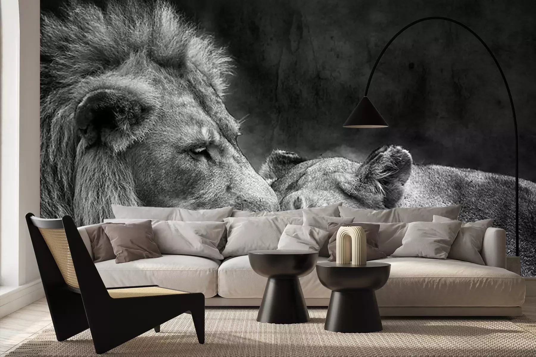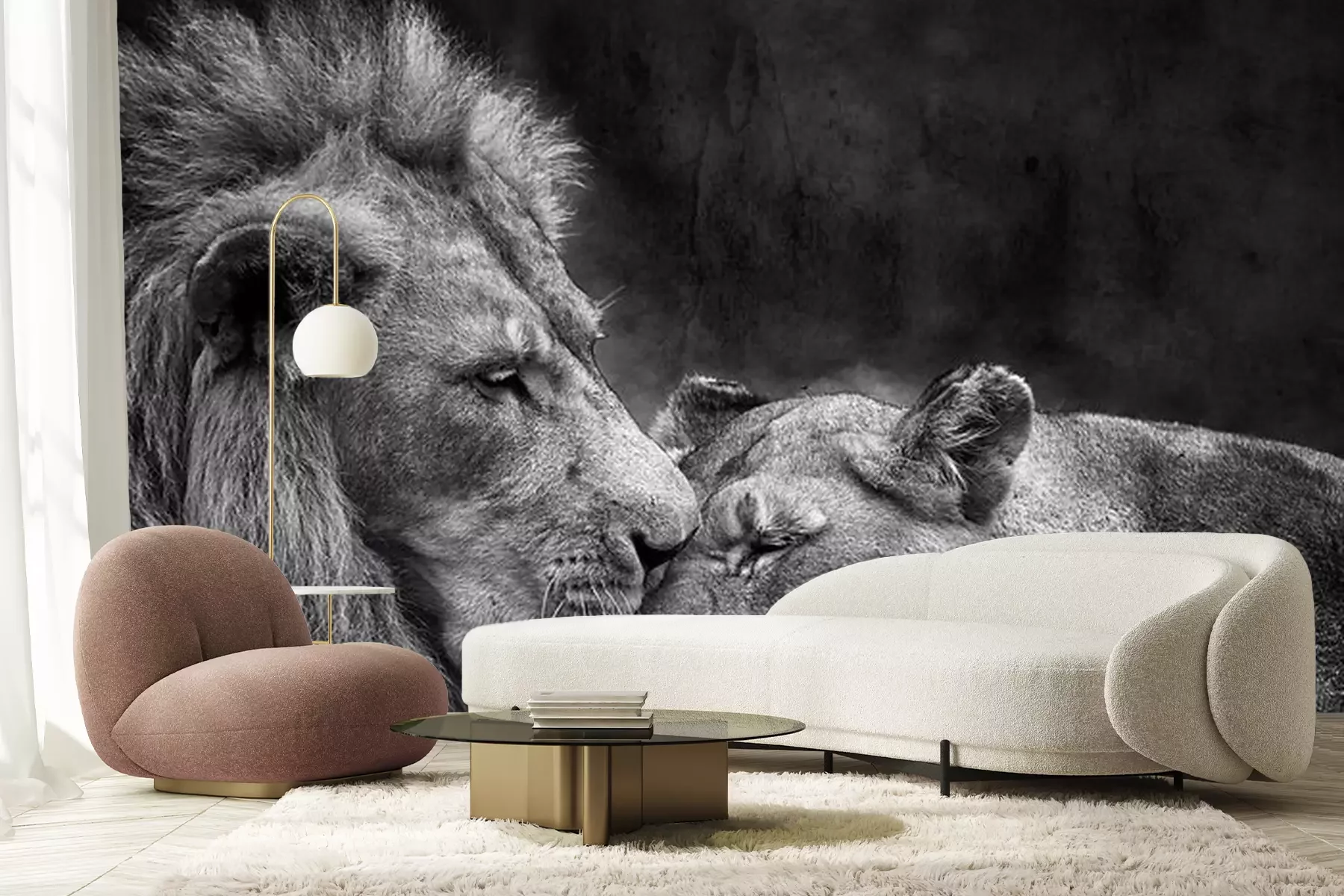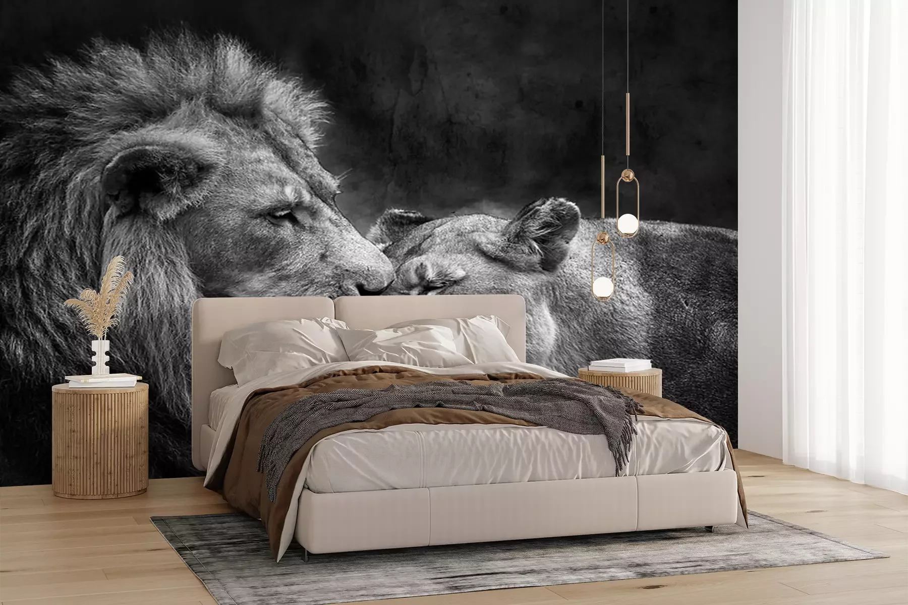 Fototapete Monochromes Porträt von verliebten Wildkatzen