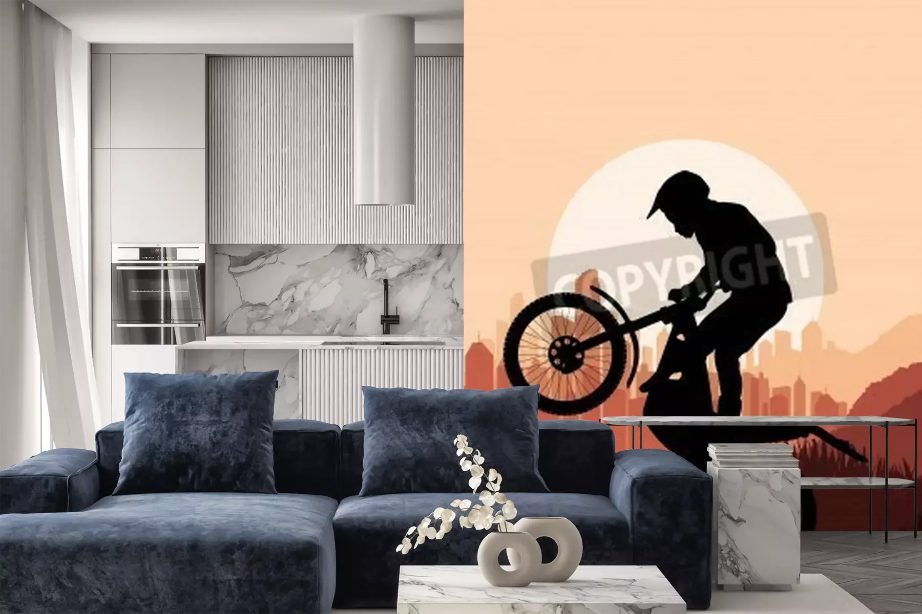 Fototapete Moped auf einem grafischen Hintergrund