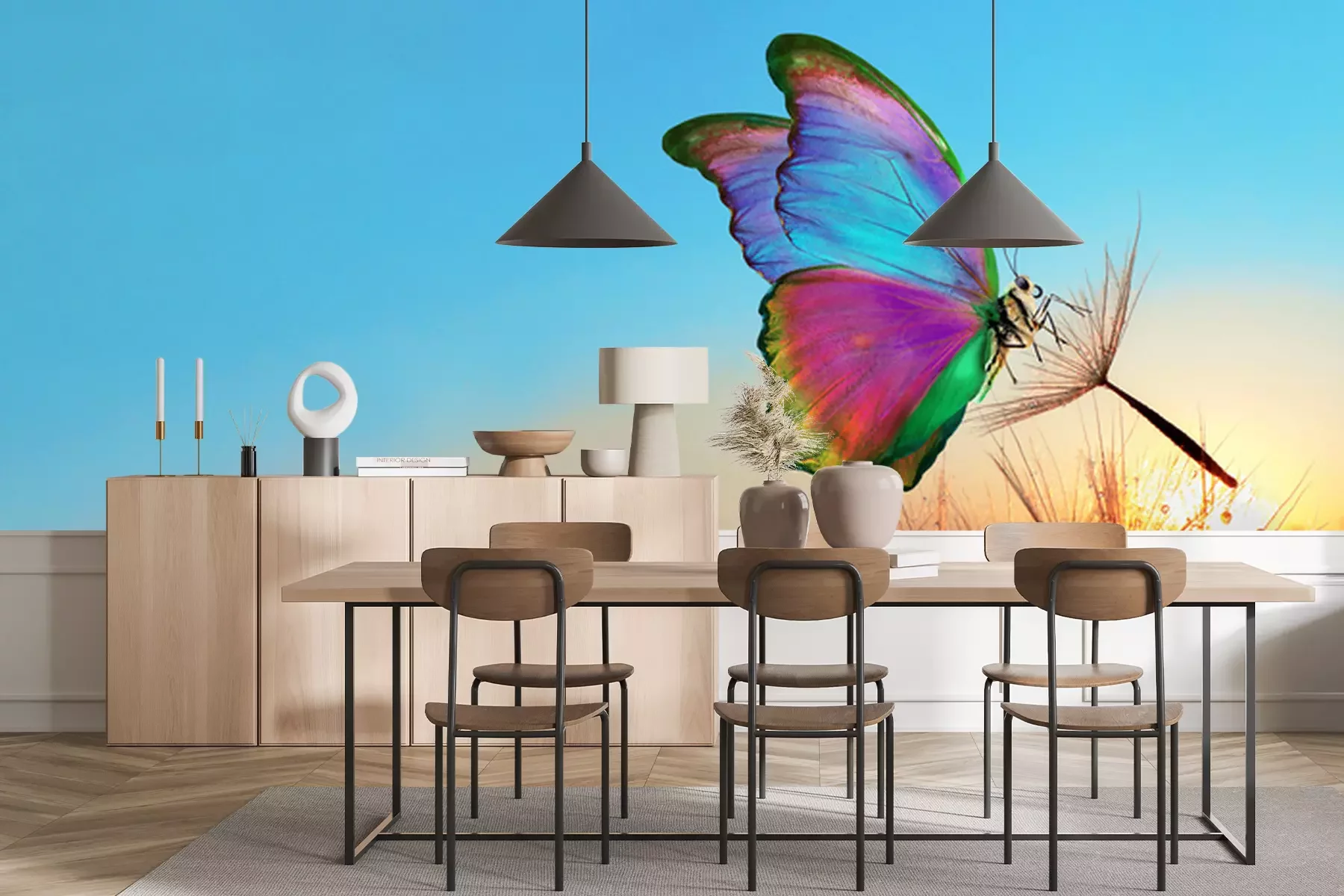 Fototapete Morpho-Schmetterling auf Löwenzahnsamen