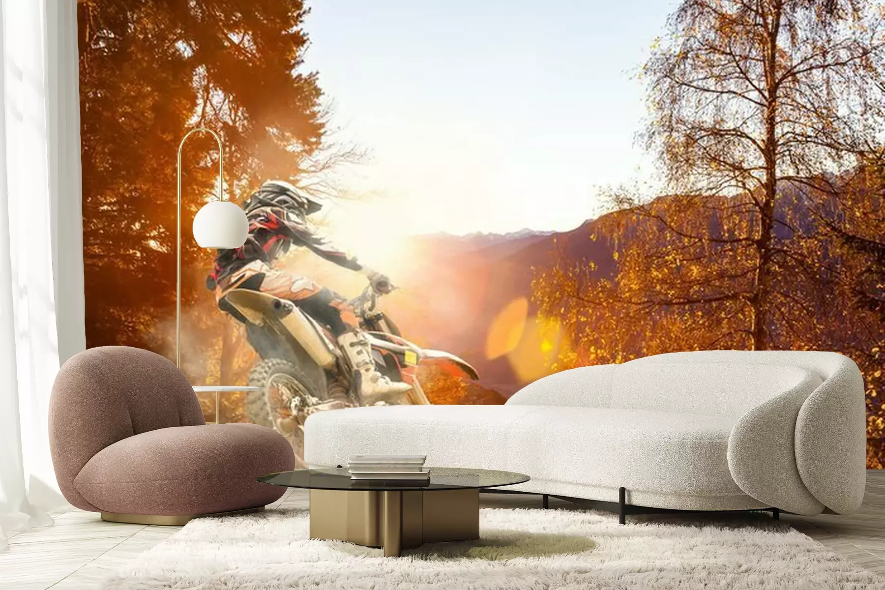 Geländemotorrad und NaturlandschaftFototapete