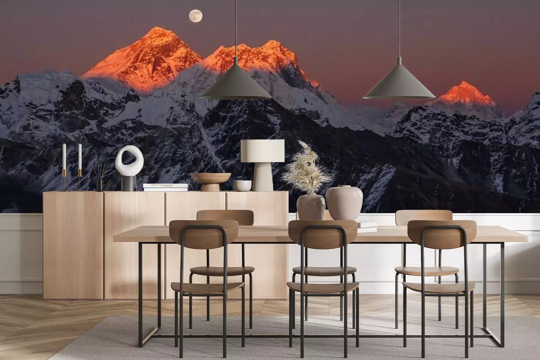 Das Material Premium+ besteht aus einer strukturierten Vinyl-Oberschicht und einem Trägermaterial (Vlies) mit einer Grammatur von 255 g/m², das kleine Unebenheiten der Wand zuverlässig kaschiert. Die feine Sandstruktur verleiht der Oberfläche eine luxuriöse Haptik, während das halbmatte Finish die Tiefe der Farben betont. Das Material ist dampfdurchlässig – so kann diese Fototapete auch in Küchen und Badezimmern eingesetzt werden. Die maximale Breite einer Tapetenbahn beträgt 100 cm. Bei größeren Abmessungen besteht die Fototapete aus mehreren gleich großen Bahnen. Der Kleber wird direkt auf die Wand aufgetragen, und die Fototapete wird auf Stoß angebracht, was für einen ästhetischen Effekt ohne sichtbare Fugen sorgt. Die Oberfläche ist pflegeleicht und kann bei Bedarf sanft mit einem feuchten Tuch abgewischt werden.