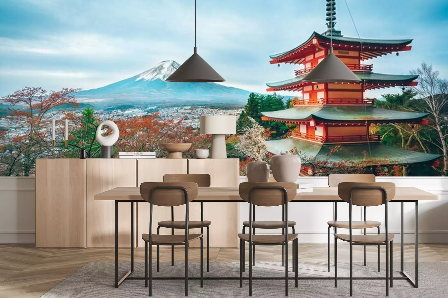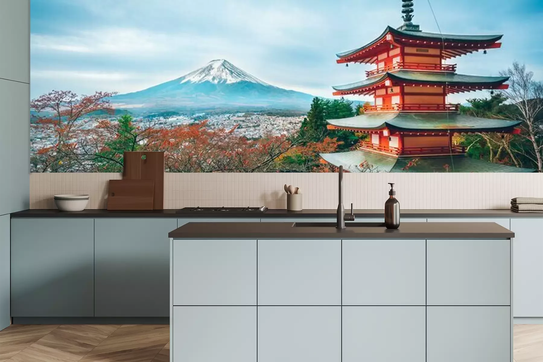 Das Material Premium+ besteht aus einer strukturierten Vinyl-Oberschicht und einem Trägermaterial (Vlies) mit einer Grammatur von 255 g/m², das kleine Unebenheiten der Wand zuverlässig kaschiert. Die feine Sandstruktur verleiht der Oberfläche eine luxuriöse Haptik, während das halbmatte Finish die Tiefe der Farben betont. Das Material ist dampfdurchlässig – so kann diese Fototapete auch in Küchen und Badezimmern eingesetzt werden. Die maximale Breite einer Tapetenbahn beträgt 100 cm. Bei größeren Abmessungen besteht die Fototapete aus mehreren gleich großen Bahnen. Der Kleber wird direkt auf die Wand aufgetragen, und die Fototapete wird auf Stoß angebracht, was für einen ästhetischen Effekt ohne sichtbare Fugen sorgt. Die Oberfläche ist pflegeleicht und kann bei Bedarf sanft mit einem feuchten Tuch abgewischt werden.