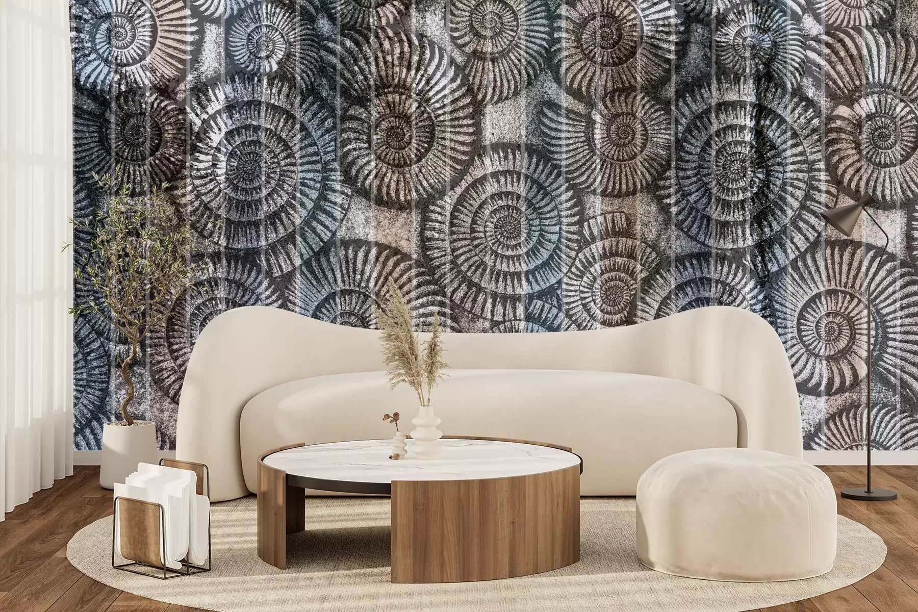 Das Material Premium+ besteht aus einer strukturierten Vinyl-Oberschicht und einem Trägermaterial (Vlies) mit einer Grammatur von 255 g/m², das kleine Unebenheiten der Wand zuverlässig kaschiert. Die feine Sandstruktur verleiht der Oberfläche eine luxuriöse Haptik, während das halbmatte Finish die Tiefe der Farben betont. Das Material ist dampfdurchlässig – so kann diese Fototapete auch in Küchen und Badezimmern eingesetzt werden. Die maximale Breite einer Tapetenbahn beträgt 100 cm. Bei größeren Abmessungen besteht die Fototapete aus mehreren gleich großen Bahnen. Der Kleber wird direkt auf die Wand aufgetragen, und die Fototapete wird auf Stoß angebracht, was für einen ästhetischen Effekt ohne sichtbare Fugen sorgt. Die Oberfläche ist pflegeleicht und kann bei Bedarf sanft mit einem feuchten Tuch abgewischt werden.