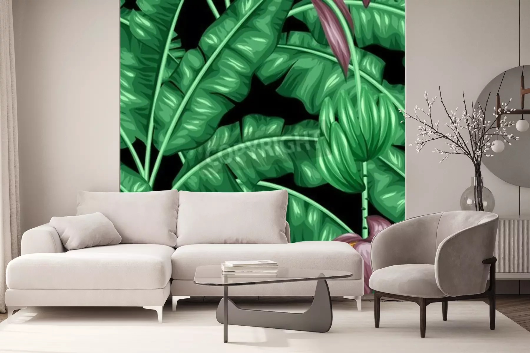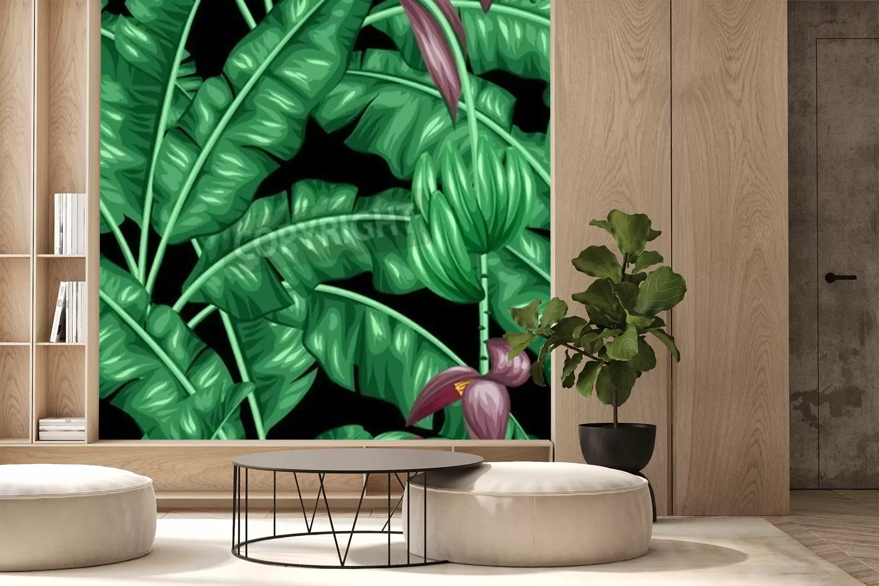 Fototapete Muster mit Natur vor schwarzem Hintergrund