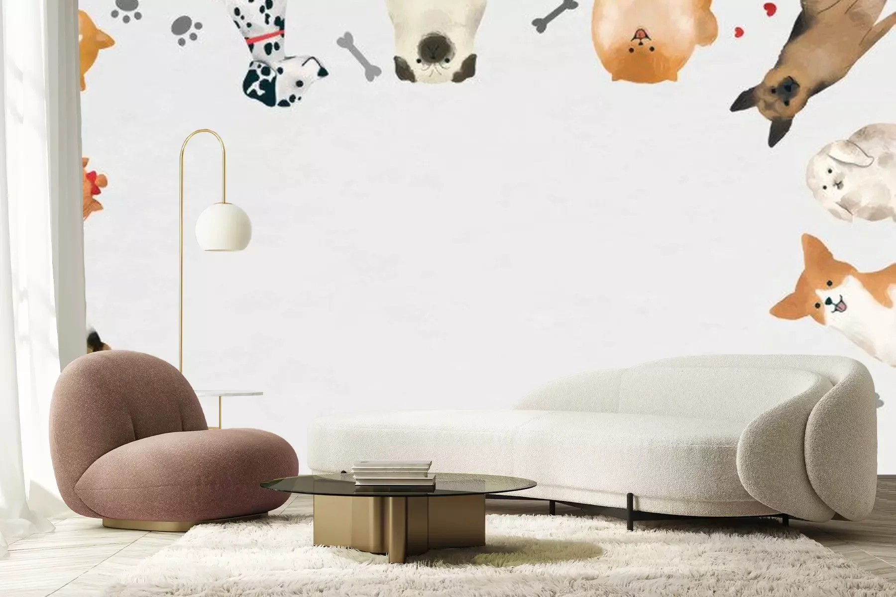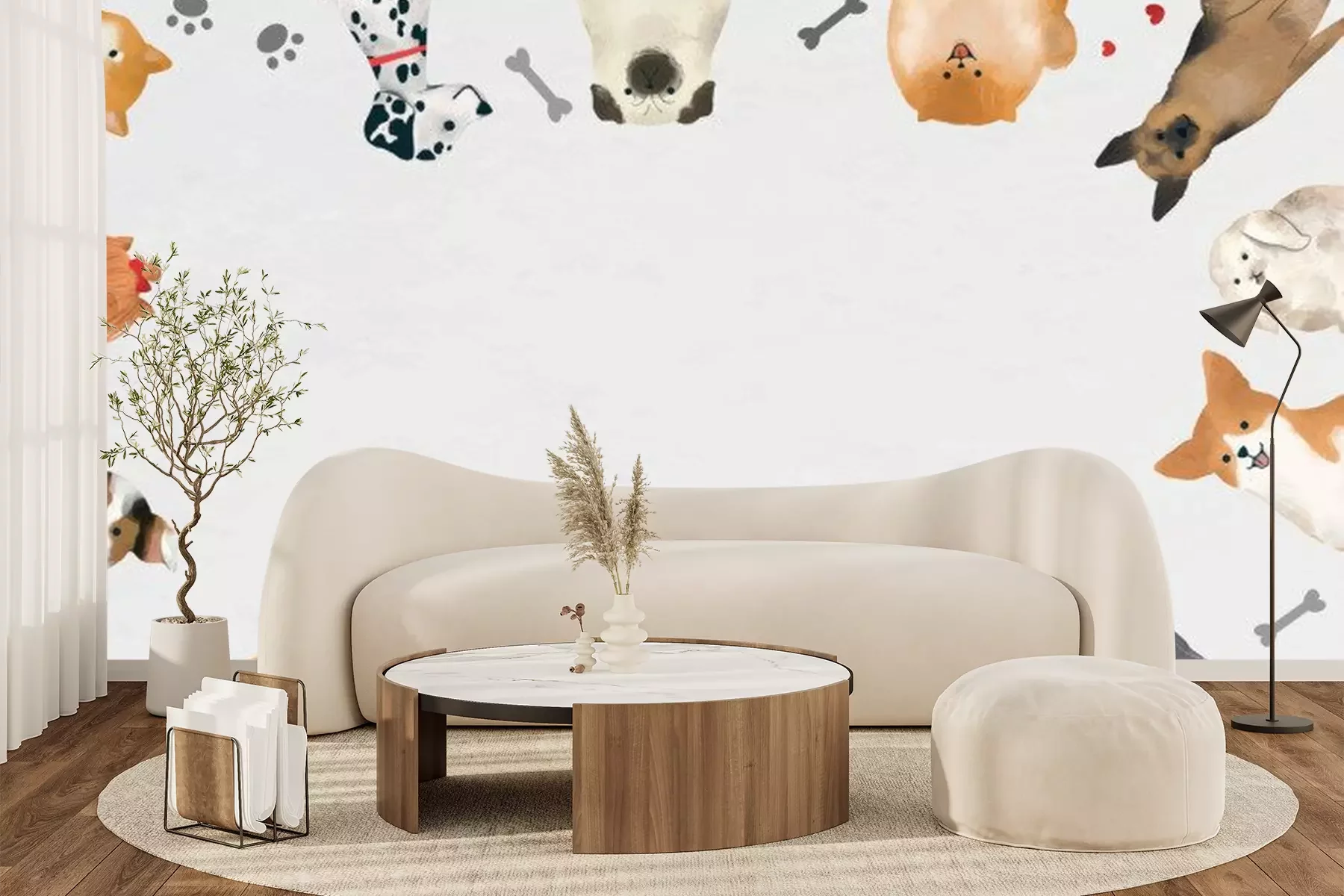 Fototapete Muster mit niedlichen Hündchen auf hellem Hintergrund