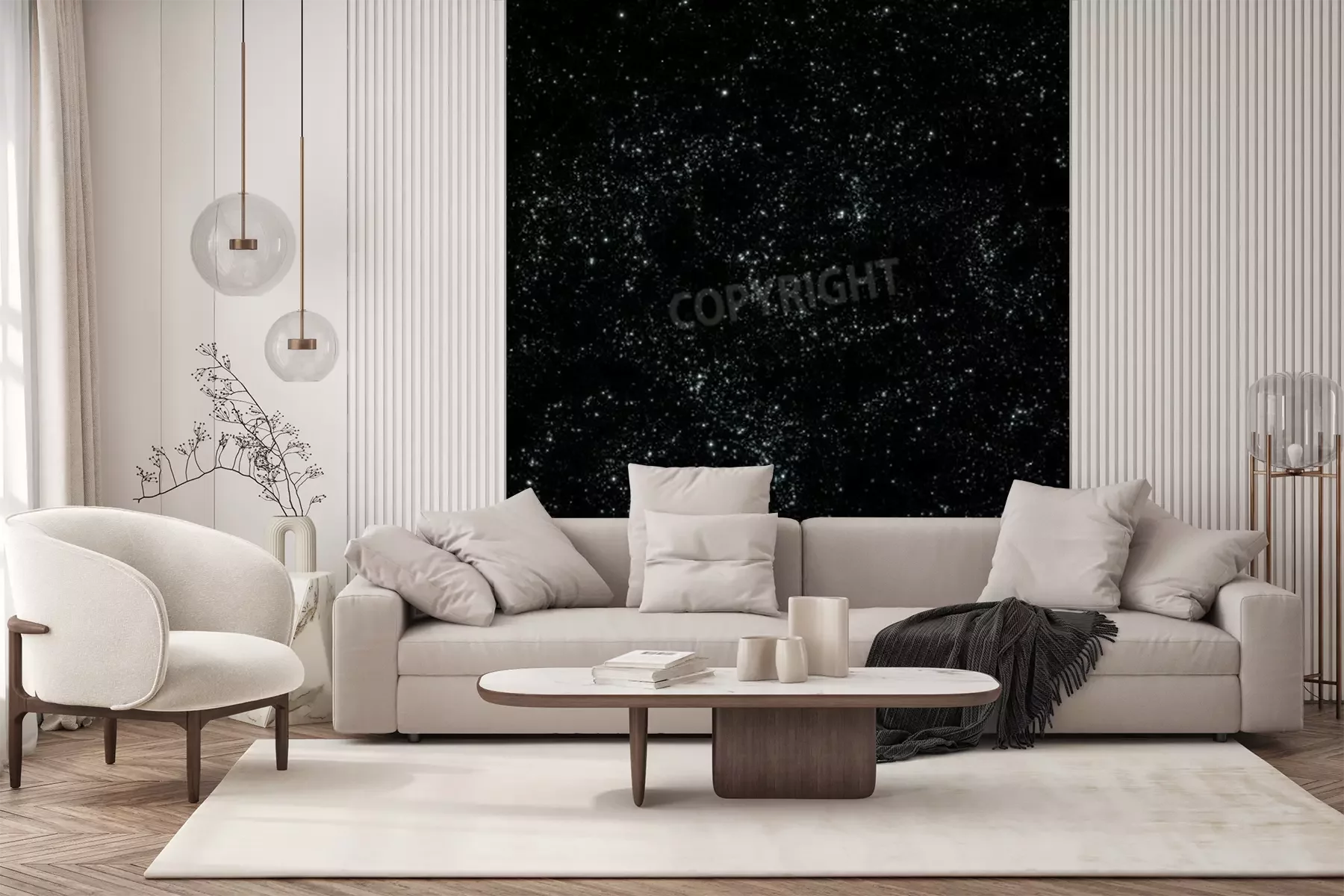 Das Material Standard ist ein hochwertiges Latexmaterial mit einer glatten, matten Oberfläche. Durch den Einsatz von HP-Latex-Drucktechnologie sind die Farben satt, langlebig und UV-beständig. So bleibt das Muster über Jahre hinweg makellos schön. Die verschmutzte Oberfläche dieses Materials kann sanft mit einem trockenen Tuch abgewischt werden. Die maximale Breite einer einzelnen Bahn beträgt 95 cm oder 105 cm – je nach Breite der bestellten Fototapete. Bei Fototapeten mit größeren Abmessungen besteht der Ausdruck aus mehreren gleich großen Tapetenbahnen. Die Fototapete wird auf Stoß angebracht, wodurch die Fugen nahezu unsichtbar sind.