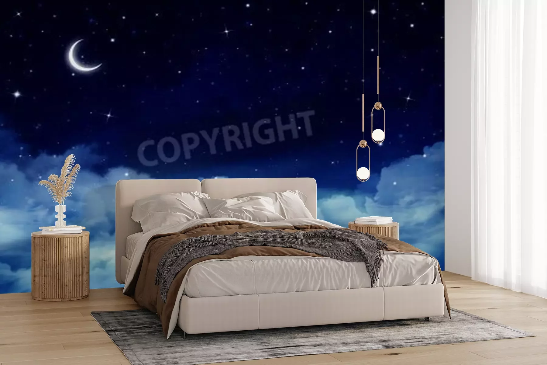 Die Fototapeten werden in Bahnen geliefert. Die Größe und die Anzahl der Bahnen, aus denen die gesamte Fototapete besteht, hängen vom gewählten Material ab. Wenn die Größe die maximale Breite des Materials überschreitet, besteht der Ausdruck aus mehreren gleich großen Bahnen.