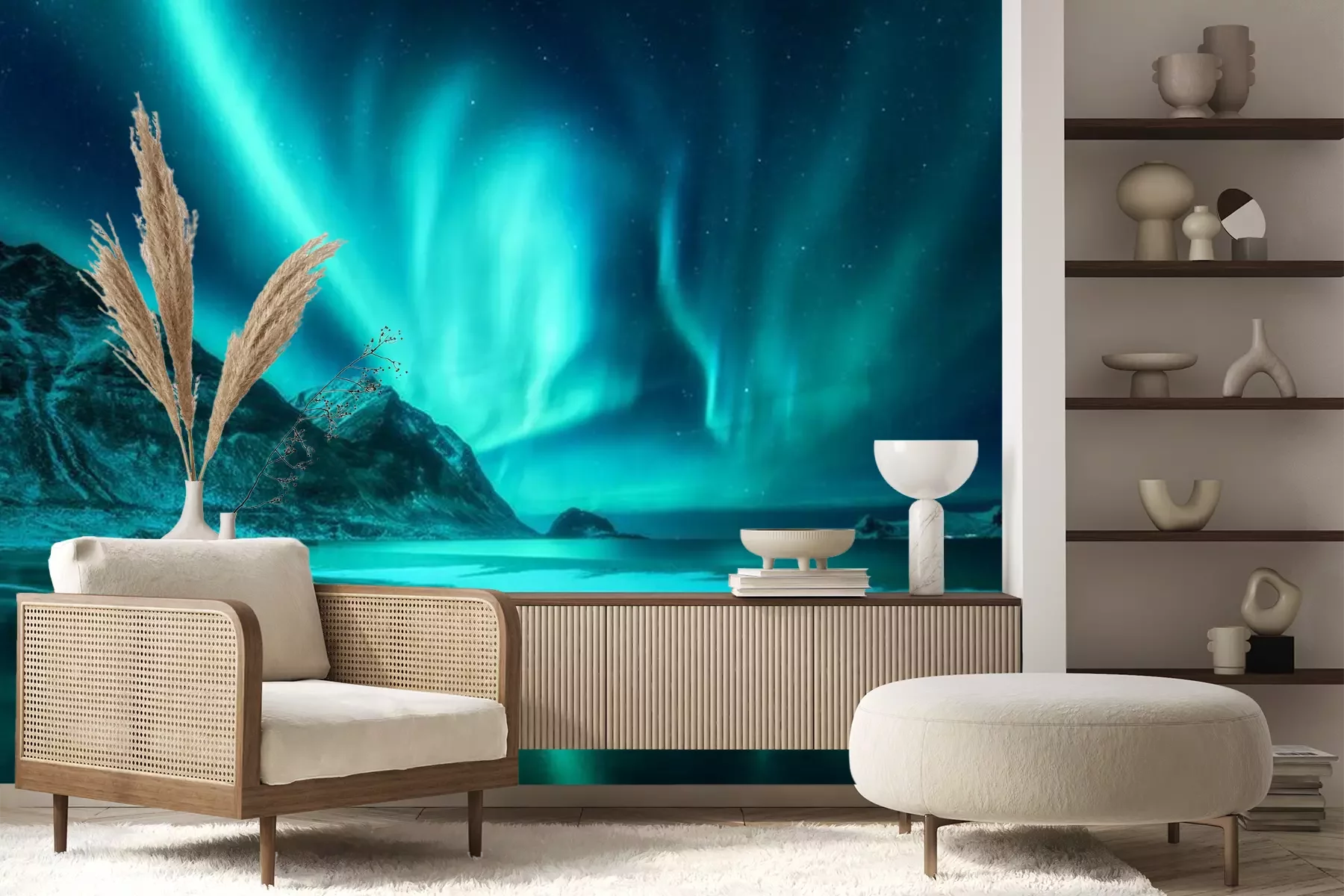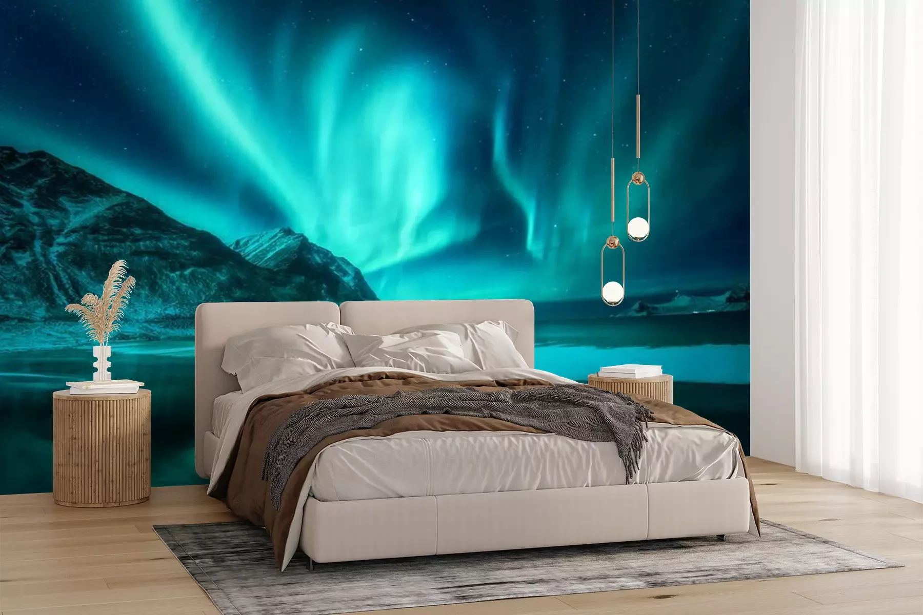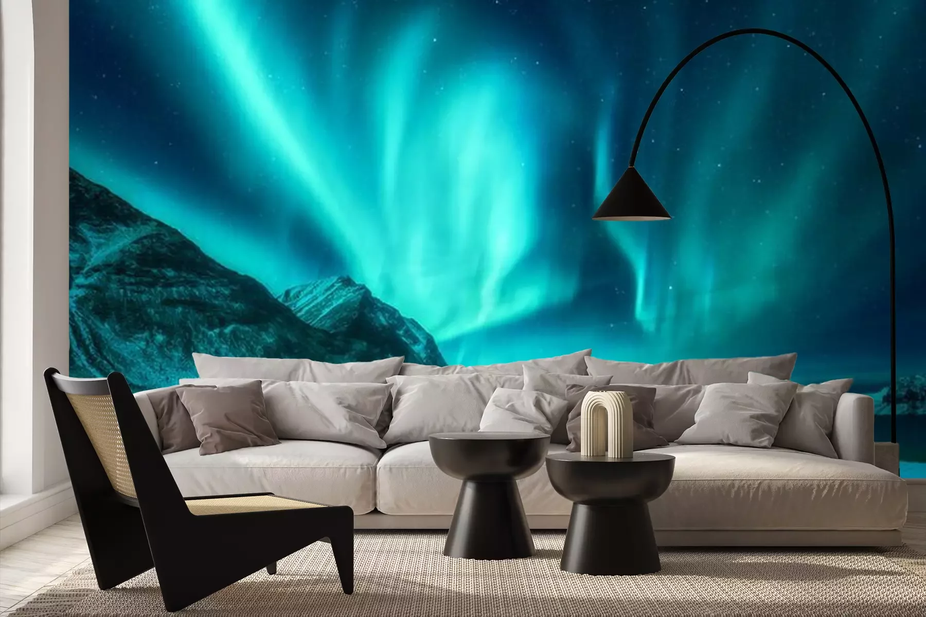 Nordlicht über den Bergen IslandsProblemlose Lieferung durch vertrauenswürdige Spediteure