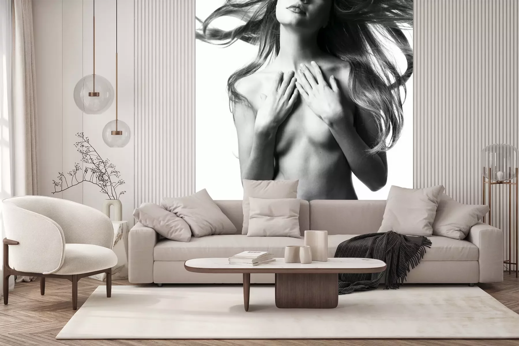 Die Fototapeten werden in Bahnen geliefert. Die Größe und die Anzahl der Bahnen, aus denen die gesamte Fototapete besteht, hängen vom gewählten Material ab. Wenn die Größe die maximale Breite des Materials überschreitet, besteht der Ausdruck aus mehreren gleich großen Bahnen.