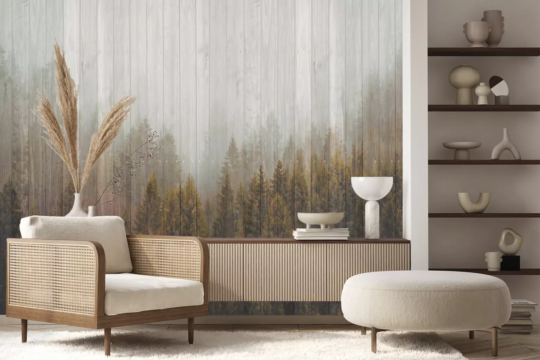 Das Material Premium+ besteht aus einer strukturierten Vinyl-Oberschicht und einem Trägermaterial (Vlies) mit einer Grammatur von 255 g/m², das kleine Unebenheiten der Wand zuverlässig kaschiert. Die feine Sandstruktur verleiht der Oberfläche eine luxuriöse Haptik, während das halbmatte Finish die Tiefe der Farben betont. Das Material ist dampfdurchlässig – so kann diese Fototapete auch in Küchen und Badezimmern eingesetzt werden. Die maximale Breite einer Tapetenbahn beträgt 100 cm. Bei größeren Abmessungen besteht die Fototapete aus mehreren gleich großen Bahnen. Der Kleber wird direkt auf die Wand aufgetragen, und die Fototapete wird auf Stoß angebracht, was für einen ästhetischen Effekt ohne sichtbare Fugen sorgt. Die Oberfläche ist pflegeleicht und kann bei Bedarf sanft mit einem feuchten Tuch abgewischt werden.