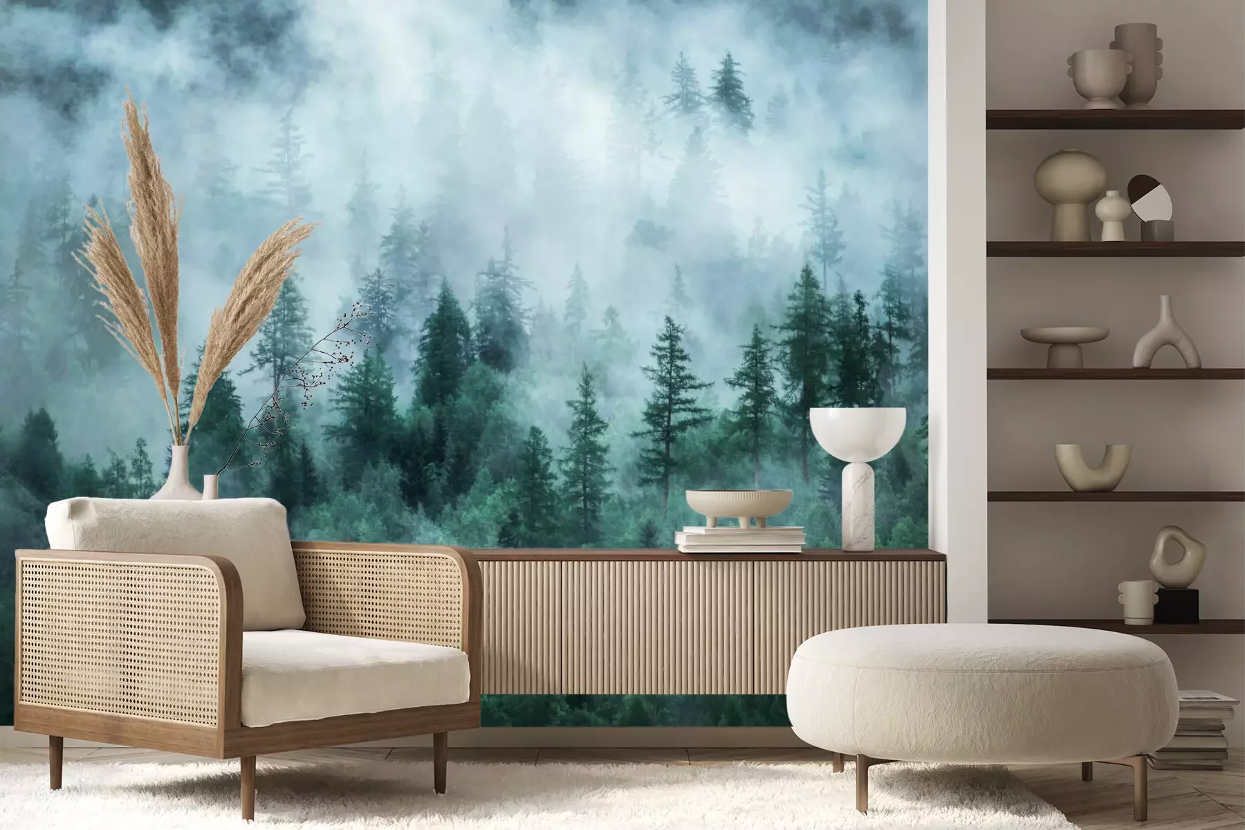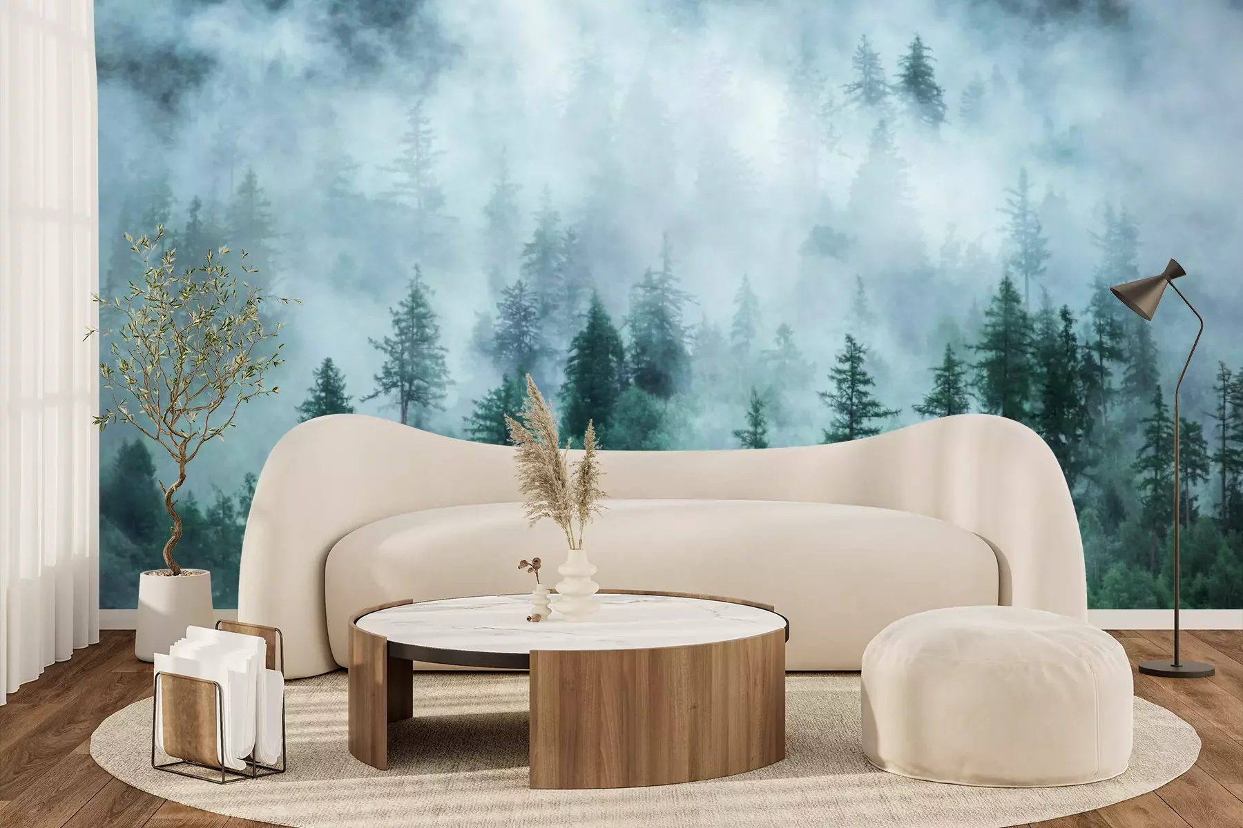 Das Material Premium+ besteht aus einer strukturierten Vinyl-Oberschicht und einem Trägermaterial (Vlies) mit einer Grammatur von 255 g/m², das kleine Unebenheiten der Wand zuverlässig kaschiert. Die feine Sandstruktur verleiht der Oberfläche eine luxuriöse Haptik, während das halbmatte Finish die Tiefe der Farben betont. Das Material ist dampfdurchlässig – so kann diese Fototapete auch in Küchen und Badezimmern eingesetzt werden. Die maximale Breite einer Tapetenbahn beträgt 100 cm. Bei größeren Abmessungen besteht die Fototapete aus mehreren gleich großen Bahnen. Der Kleber wird direkt auf die Wand aufgetragen, und die Fototapete wird auf Stoß angebracht, was für einen ästhetischen Effekt ohne sichtbare Fugen sorgt. Die Oberfläche ist pflegeleicht und kann bei Bedarf sanft mit einem feuchten Tuch abgewischt werden.