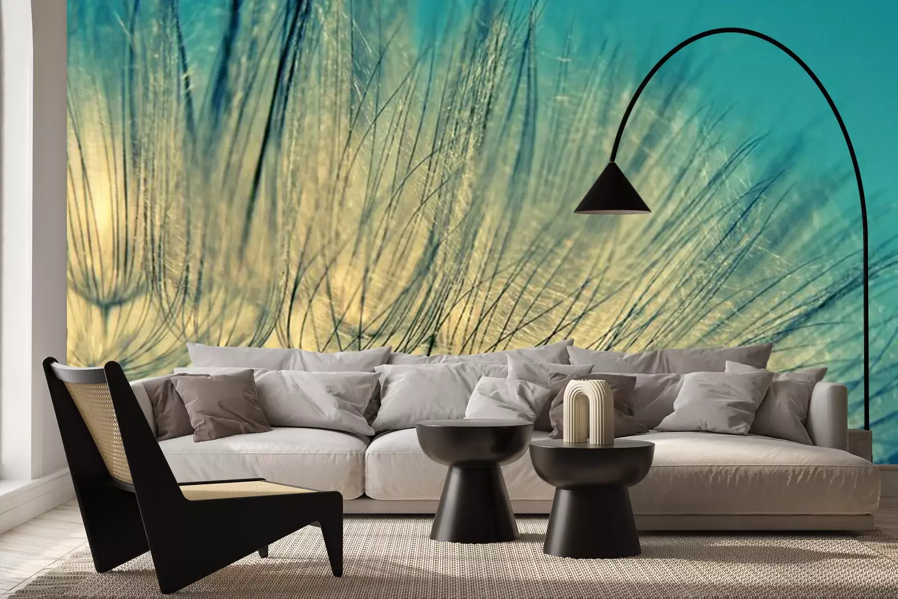 Das Material Premium+ besteht aus einer strukturierten Vinyl-Oberschicht und einem Trägermaterial (Vlies) mit einer Grammatur von 255 g/m², das kleine Unebenheiten der Wand zuverlässig kaschiert. Die feine Sandstruktur verleiht der Oberfläche eine luxuriöse Haptik, während das halbmatte Finish die Tiefe der Farben betont. Das Material ist dampfdurchlässig – so kann diese Fototapete auch in Küchen und Badezimmern eingesetzt werden. Die maximale Breite einer Tapetenbahn beträgt 100 cm. Bei größeren Abmessungen besteht die Fototapete aus mehreren gleich großen Bahnen. Der Kleber wird direkt auf die Wand aufgetragen, und die Fototapete wird auf Stoß angebracht, was für einen ästhetischen Effekt ohne sichtbare Fugen sorgt. Die Oberfläche ist pflegeleicht und kann bei Bedarf sanft mit einem feuchten Tuch abgewischt werden.