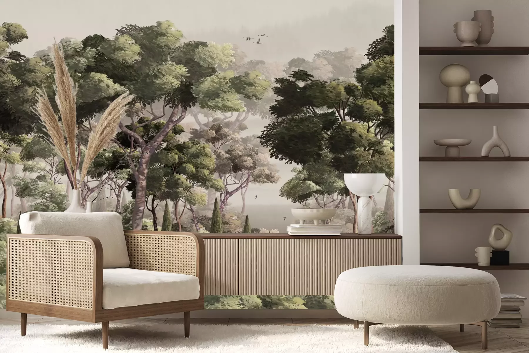 Das Material Premium+ besteht aus einer strukturierten Vinyl-Oberschicht und einem Trägermaterial (Vlies) mit einer Grammatur von 255 g/m², das kleine Unebenheiten der Wand zuverlässig kaschiert. Die feine Sandstruktur verleiht der Oberfläche eine luxuriöse Haptik, während das halbmatte Finish die Tiefe der Farben betont. Das Material ist dampfdurchlässig – so kann diese Fototapete auch in Küchen und Badezimmern eingesetzt werden. Die maximale Breite einer Tapetenbahn beträgt 100 cm. Bei größeren Abmessungen besteht die Fototapete aus mehreren gleich großen Bahnen. Der Kleber wird direkt auf die Wand aufgetragen, und die Fototapete wird auf Stoß angebracht, was für einen ästhetischen Effekt ohne sichtbare Fugen sorgt. Die Oberfläche ist pflegeleicht und kann bei Bedarf sanft mit einem feuchten Tuch abgewischt werden.