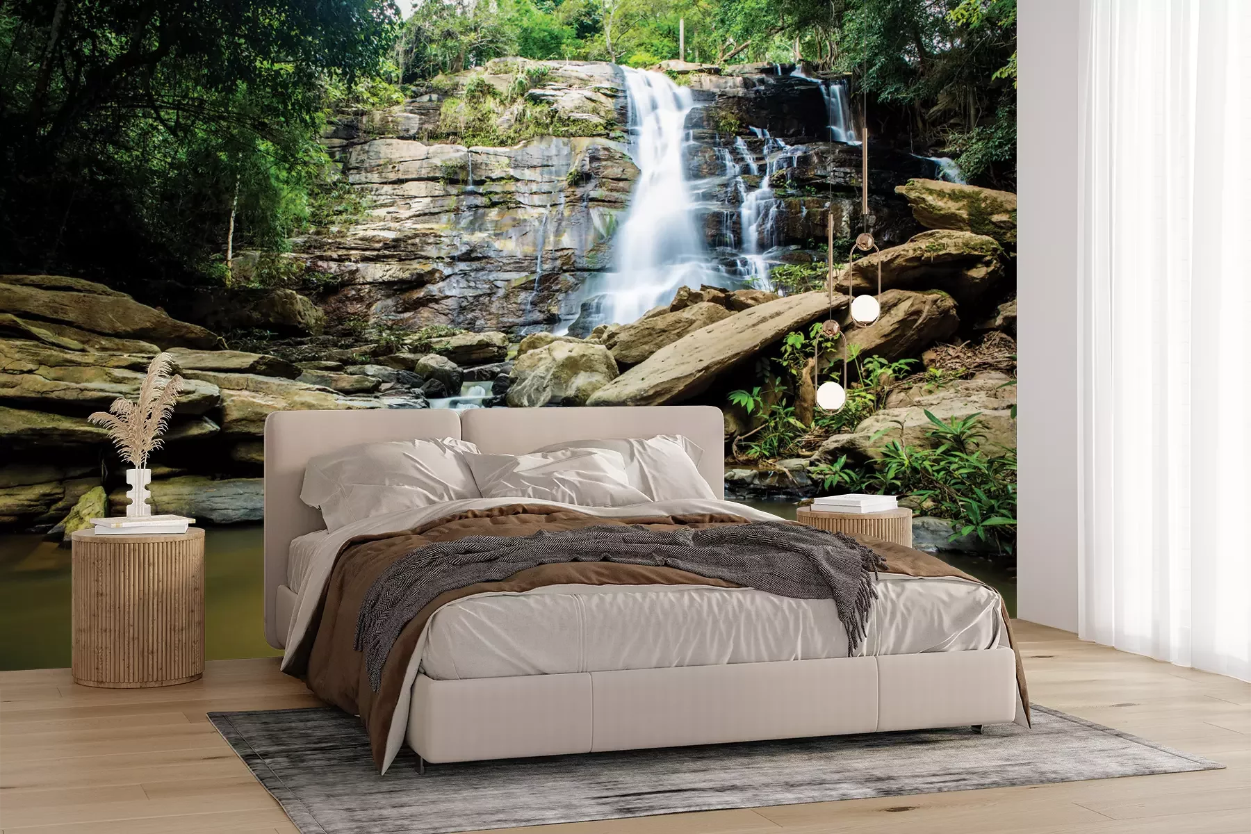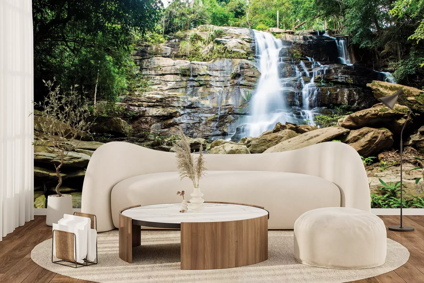 Das Material Premium+ besteht aus einer strukturierten Vinyl-Oberschicht und einem Trägermaterial (Vlies) mit einer Grammatur von 255 g/m², das kleine Unebenheiten der Wand zuverlässig kaschiert. Die feine Sandstruktur verleiht der Oberfläche eine luxuriöse Haptik, während das halbmatte Finish die Tiefe der Farben betont. Das Material ist dampfdurchlässig – so kann diese Fototapete auch in Küchen und Badezimmern eingesetzt werden. Die maximale Breite einer Tapetenbahn beträgt 100 cm. Bei größeren Abmessungen besteht die Fototapete aus mehreren gleich großen Bahnen. Der Kleber wird direkt auf die Wand aufgetragen, und die Fototapete wird auf Stoß angebracht, was für einen ästhetischen Effekt ohne sichtbare Fugen sorgt. Die Oberfläche ist pflegeleicht und kann bei Bedarf sanft mit einem feuchten Tuch abgewischt werden.