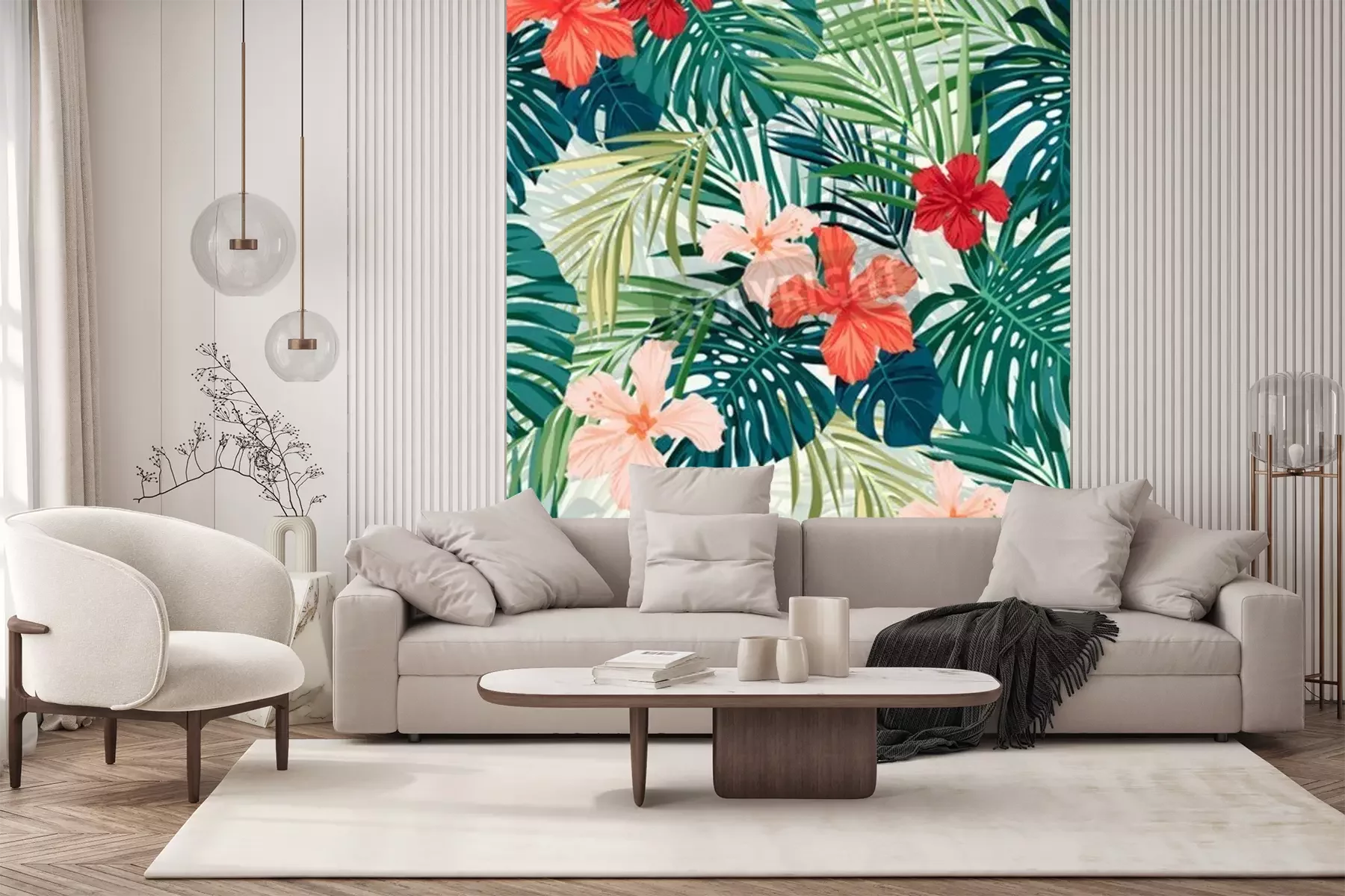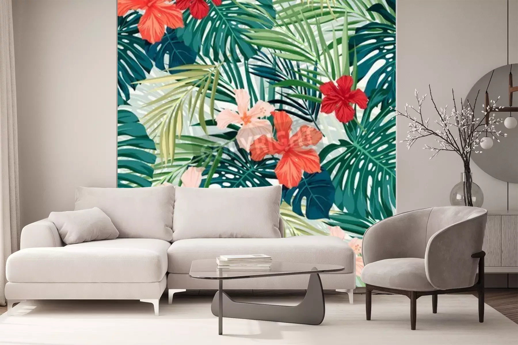 Fototapete Natürliches Muster mit exotischen Blumen