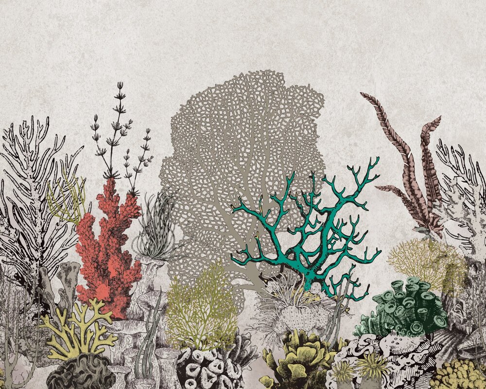 Fototapete: Nautisches Muster mit Korallen auf strukturiertem Hintergrund