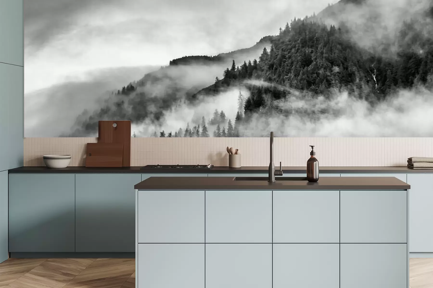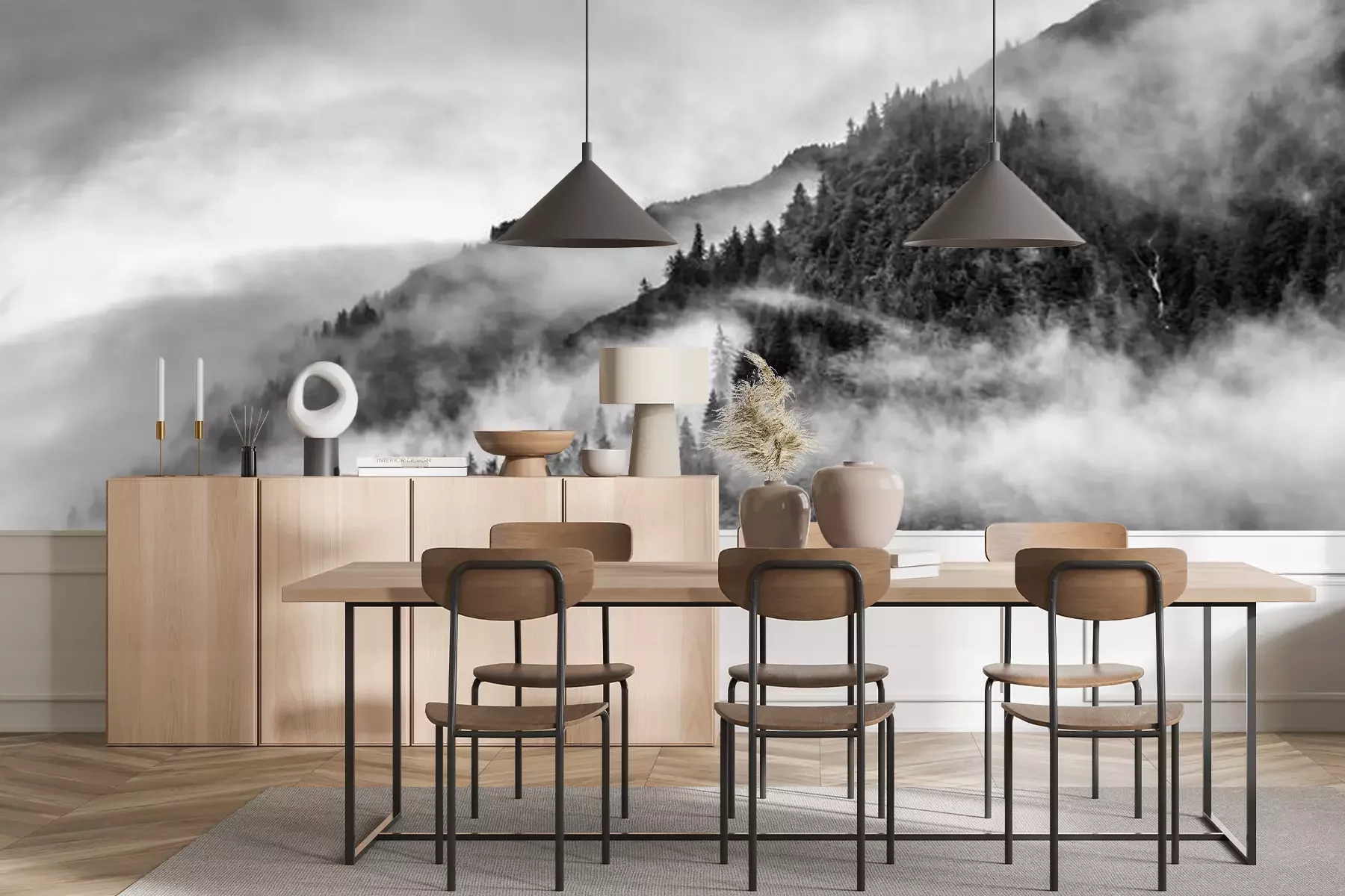 Fototapete Nebel wald Schwarzweißer