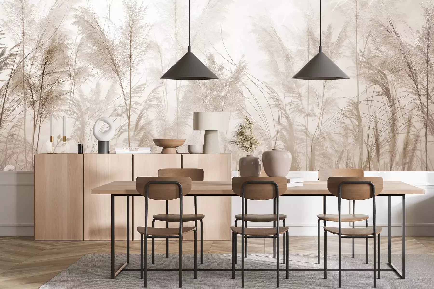 Das Material Premium+ besteht aus einer strukturierten Vinyl-Oberschicht und einem Trägermaterial (Vlies) mit einer Grammatur von 255 g/m², das kleine Unebenheiten der Wand zuverlässig kaschiert. Die feine Sandstruktur verleiht der Oberfläche eine luxuriöse Haptik, während das halbmatte Finish die Tiefe der Farben betont. Das Material ist dampfdurchlässig – so kann diese Fototapete auch in Küchen und Badezimmern eingesetzt werden. Die maximale Breite einer Tapetenbahn beträgt 100 cm. Bei größeren Abmessungen besteht die Fototapete aus mehreren gleich großen Bahnen. Der Kleber wird direkt auf die Wand aufgetragen, und die Fototapete wird auf Stoß angebracht, was für einen ästhetischen Effekt ohne sichtbare Fugen sorgt. Die Oberfläche ist pflegeleicht und kann bei Bedarf sanft mit einem feuchten Tuch abgewischt werden.