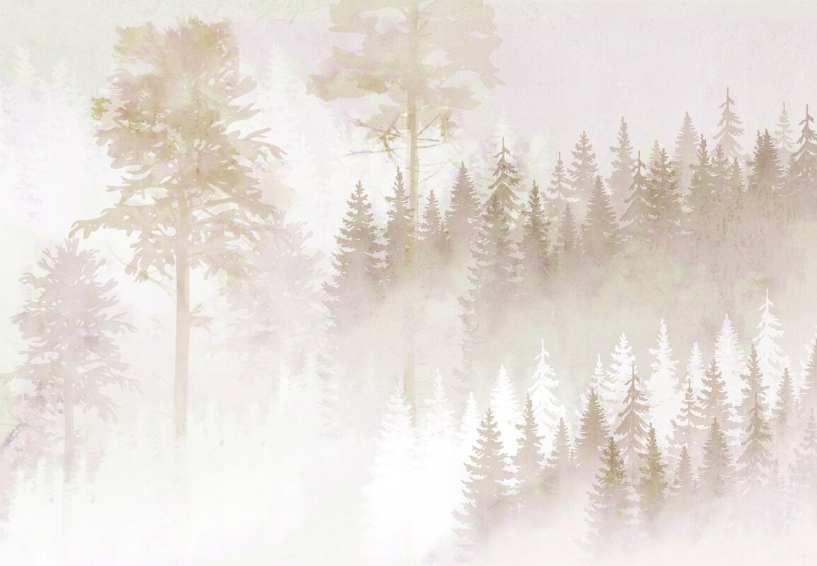 Fototapete: Neblige Waldkomposition in Beigetönen