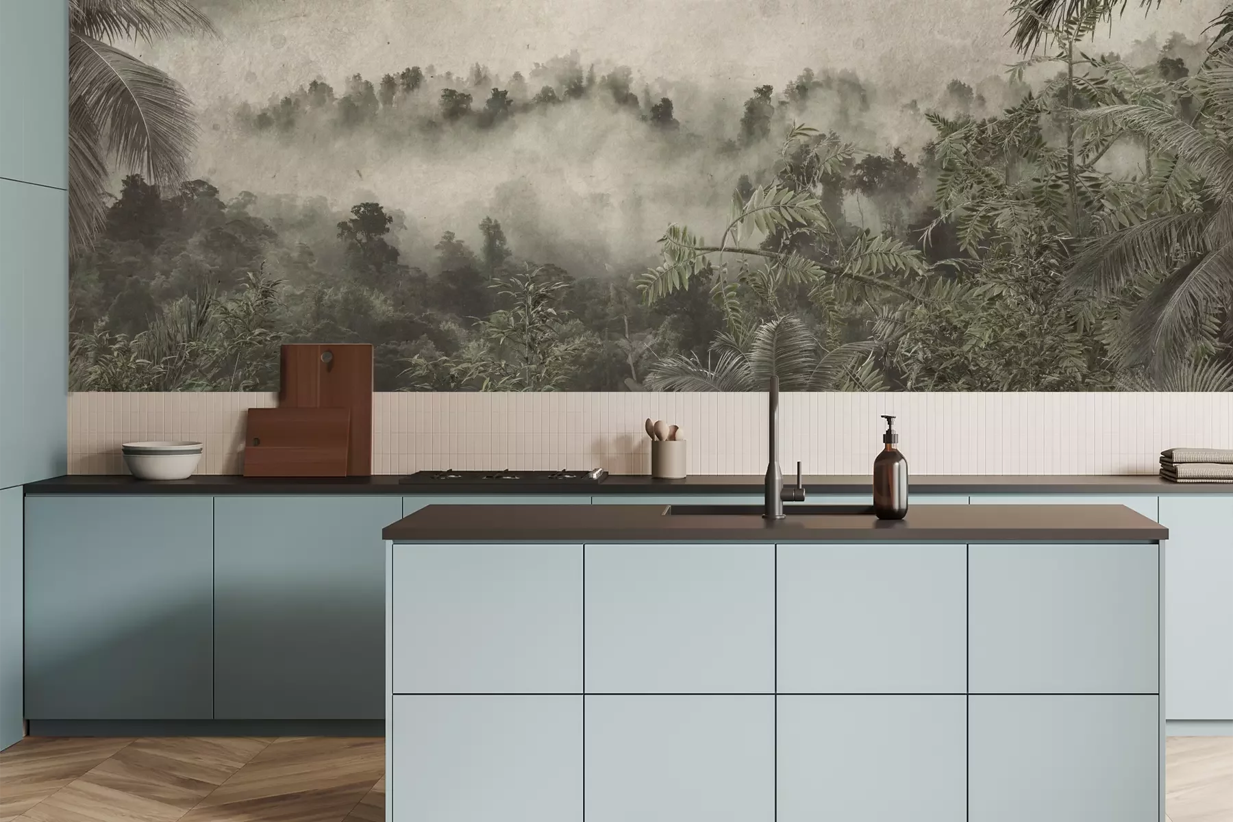 Das Material Premium+ besteht aus einer strukturierten Vinyl-Oberschicht und einem Trägermaterial (Vlies) mit einer Grammatur von 255 g/m², das kleine Unebenheiten der Wand zuverlässig kaschiert. Die feine Sandstruktur verleiht der Oberfläche eine luxuriöse Haptik, während das halbmatte Finish die Tiefe der Farben betont. Das Material ist dampfdurchlässig – so kann diese Fototapete auch in Küchen und Badezimmern eingesetzt werden. Die maximale Breite einer Tapetenbahn beträgt 100 cm. Bei größeren Abmessungen besteht die Fototapete aus mehreren gleich großen Bahnen. Der Kleber wird direkt auf die Wand aufgetragen, und die Fototapete wird auf Stoß angebracht, was für einen ästhetischen Effekt ohne sichtbare Fugen sorgt. Die Oberfläche ist pflegeleicht und kann bei Bedarf sanft mit einem feuchten Tuch abgewischt werden.