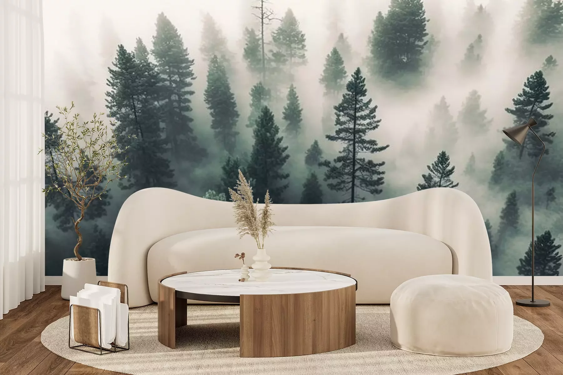 Fototapete Nebliger Wald von oben gesehen
