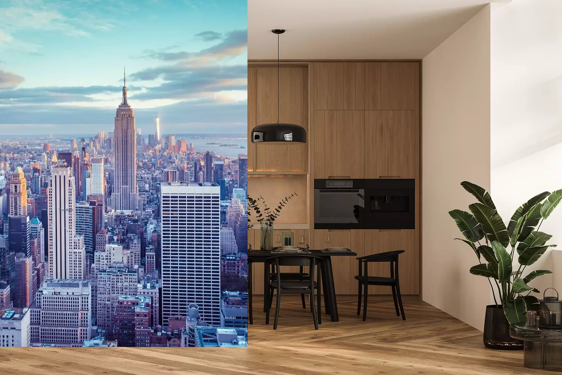 Das Material Premium+ besteht aus einer strukturierten Vinyl-Oberschicht und einem Trägermaterial (Vlies) mit einer Grammatur von 255 g/m², das kleine Unebenheiten der Wand zuverlässig kaschiert. Die feine Sandstruktur verleiht der Oberfläche eine luxuriöse Haptik, während das halbmatte Finish die Tiefe der Farben betont. Das Material ist dampfdurchlässig – so kann diese Fototapete auch in Küchen und Badezimmern eingesetzt werden. Die maximale Breite einer Tapetenbahn beträgt 100 cm. Bei größeren Abmessungen besteht die Fototapete aus mehreren gleich großen Bahnen. Der Kleber wird direkt auf die Wand aufgetragen, und die Fototapete wird auf Stoß angebracht, was für einen ästhetischen Effekt ohne sichtbare Fugen sorgt. Die Oberfläche ist pflegeleicht und kann bei Bedarf sanft mit einem feuchten Tuch abgewischt werden.