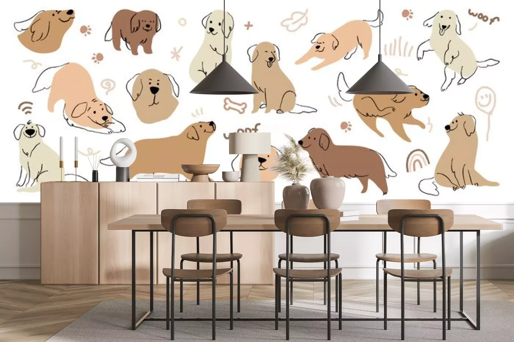 Fototapete Niedliche Hündchen auf weißem Hintergrund